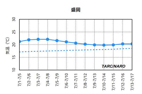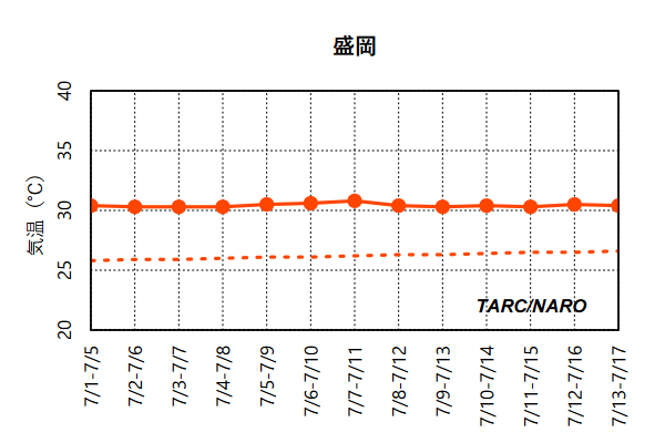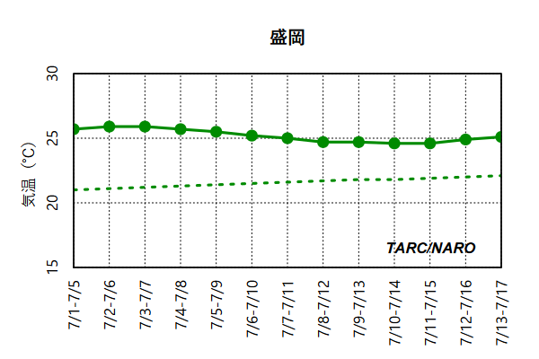 - 実線が予報値、破線は同時期の平年値を示します。