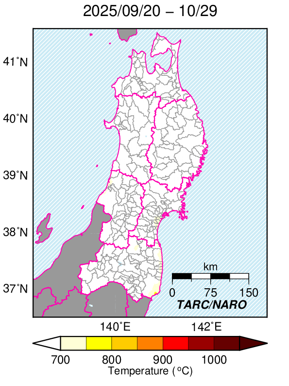 - 2024年7月5日より、2024年シーズンの更新を開始しました。2024年より「10日間の平均気温」を追加しています。1980年以降すべての年で選択可能です。(2024/7/5)