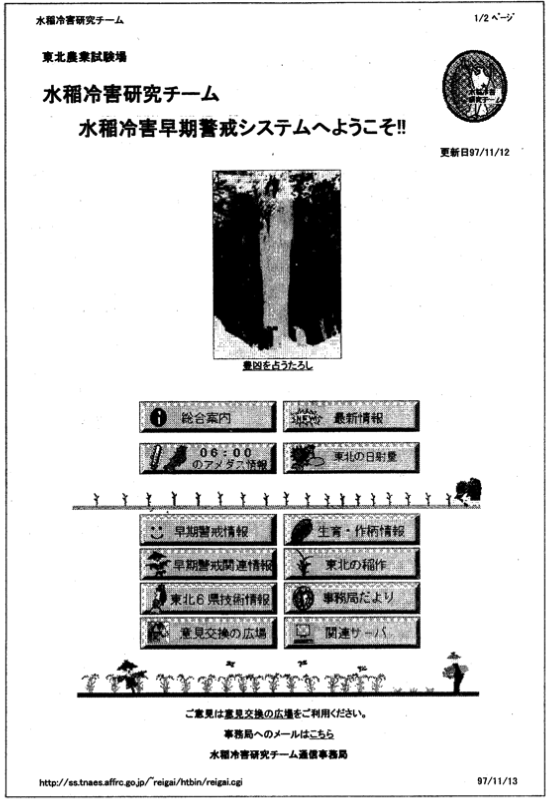 図:1997年の「水稲冷害早期警戒システム」のトップページ(鳥越, 1997より)