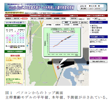 (2010年研究成果情報 「Googleマップによる気象予測データを用いた水稲栽培管理警戒情報システム」)