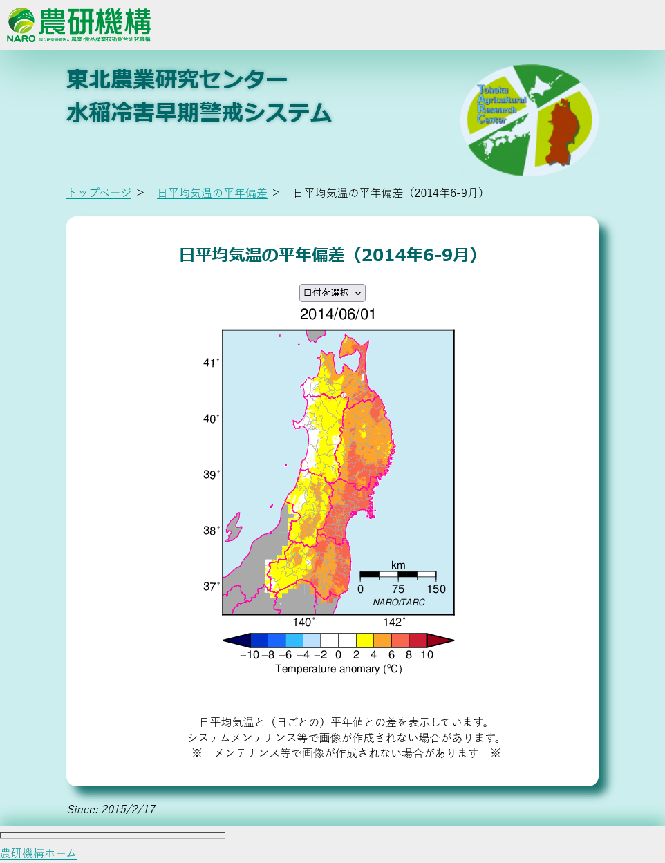 計算環境の都合により基礎としていたメッシュデータを作成できなくなり、この年の11月まで「水稲冷害早期警戒システム」の更新を停止していました。