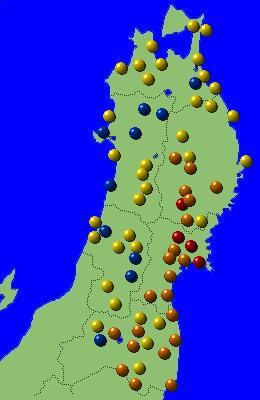 地帯6:平均気温12度、最高気温15度、最低気温7度。日照はほとんどなかった。平均気温は平年より3度、最高気温は4度、最低気温は1.5度程度低く推移。