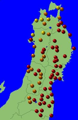 台風7号が福島県を通過、午後から太平洋側を中心にかなりの降雨があった。北部は午前中日差しがあった。