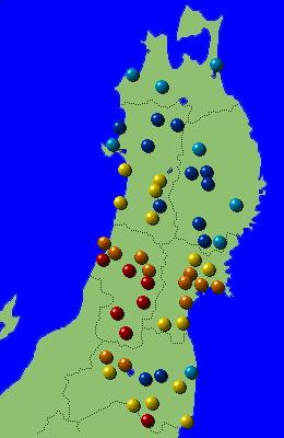 東北地方アメダス分布図(日別)
