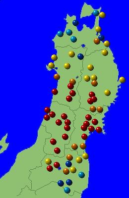 東北地方アメダス分布図(日別)