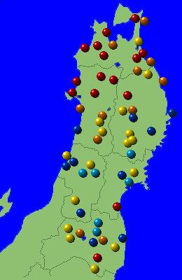 東北地方アメダス分布図(日別)