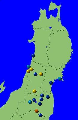 東北地方アメダス分布図(日別)