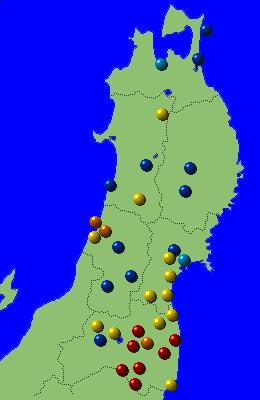 東北地方アメダス分布図(日別)