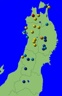 東北地方アメダス分布図(日別)