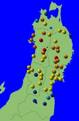東北地方アメダス分布図(日別)