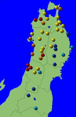 東北地方アメダス分布図(日別)