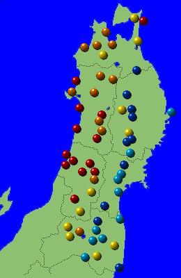 山形県 酒田,鶴岡,狩川,新庄,肘折,尾花沢,楯岡,山形,長井,米沢