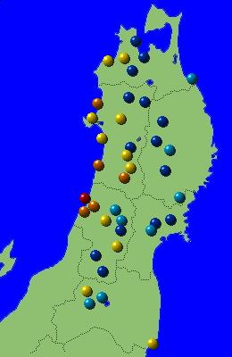 山形県 酒田,鶴岡,狩川,新庄,肘折,尾花沢,楯岡,山形,長井,米沢
