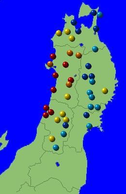 山形県 酒田,鶴岡,狩川,新庄,肘折,尾花沢,楯岡,山形,長井,米沢