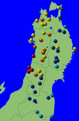 山形県 酒田,鶴岡,狩川,新庄,肘折,尾花沢,楯岡,山形,長井,米沢