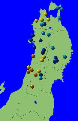 山形県 酒田,鶴岡,狩川,新庄,肘折,尾花沢,楯岡,山形,長井,米沢