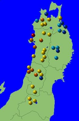 山形県 酒田,鶴岡,狩川,新庄,肘折,尾花沢,楯岡,山形,長井,米沢