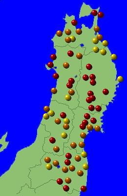 東北地方アメダス分布図(日別)