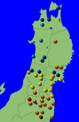 東北地方アメダス分布図(日別)