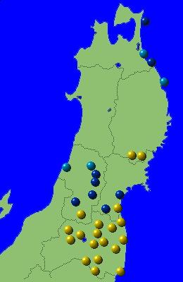 東北地方アメダス分布図(日別)