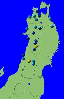 泊,大館,鹿角,大潟,阿仁合,秋田,角館,大曲,本荘,横手,湯沢
