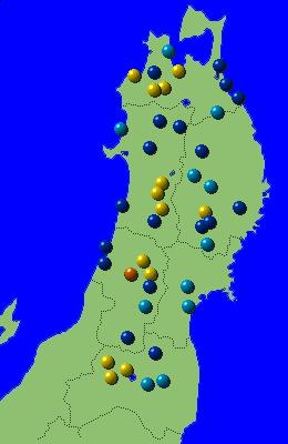 東北地方アメダス分布図(日別)