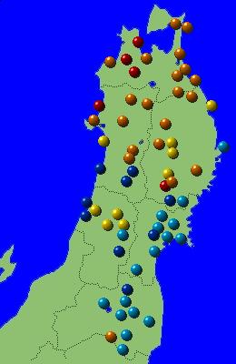 | 8 | 22.6 | 25.6 | 19.7 | 14.3 | 1.5 | 21.2 | 25.7 | 16.7 | 4.8 | 6.5 | 1.4 | 2.4 | 0.2 | -2.3 | 3.5 |