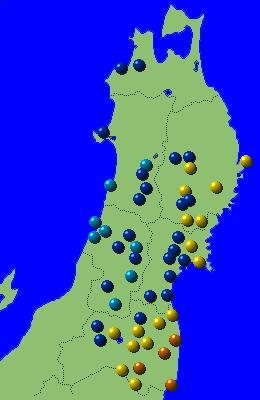 東北地方アメダス分布図(日別)