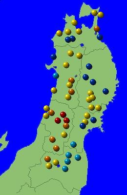 山形県 酒田,鶴岡,狩川,新庄,肘折,尾花沢,楯岡,山形,長井,米沢