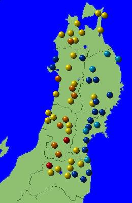 山形県 酒田,鶴岡,狩川,新庄,肘折,尾花沢,楯岡,山形,長井,米沢