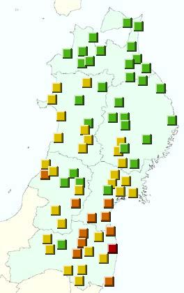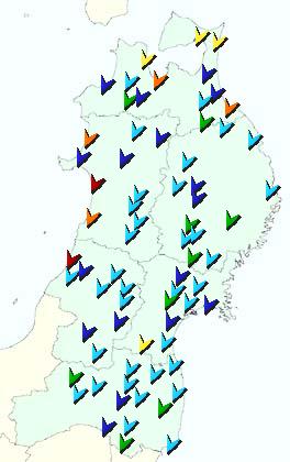 むつ : 23.6℃ 小田野沢 : 23.3℃ 蟹田 : 23.2℃ 五所川原 : 23.2℃ 青森 : 23.9℃ 六ケ所 : 22.5℃ 鯵ケ沢 : 23.7℃ 弘前 : 23.3℃ 黒石 : 23.1℃ 三沢 : 23.0℃ 十和田 : 23.2℃ 八戸 : 23.4℃ 三戸 : 22.9℃ 能代 : 24.3℃ 大館 : 24.3℃ 鹿角 : 23.1℃ 大潟 : 24.4℃ 阿仁合 : 23.1℃ 秋田 : 25.4℃ 角館 : 23.9℃ 大曲 : 24.3℃ 本荘 : 25.4℃ 横手 : 24.8℃ 湯沢 : 24.0℃ 軽米 : 22.8℃ 久慈 : 23.2℃ 岩手松尾 : 22.1℃ 雫石 : 22.6℃ 盛岡 : 22.5℃ 宮古 : 23.3℃ 紫波 : 22.6℃ 遠野 : 23.3℃ 北上 : 24.4℃ 若柳 : 24.3℃ 江刺 : 23.7℃ 一関 : 24.5℃ 千厩 : 23.6℃ 築舘 : 24.6℃ 米山 : 24.9℃ 古川 : 24.7℃ 大衡 : 23.6℃ 鹿島台 : 24.6℃ 石巻 : 25.7℃ 仙台 : 27.5℃ 白石 : 26.1℃ 亘理 : 27.5℃ 酒田 : 25.8℃ 鶴岡 : 26.1℃ 狩川 : 24.5℃ 新庄 : 23.9℃ 肘折 : 22.4℃ 尾花沢 : 23.6℃ 楯岡 : 24.8℃ 山形 : 26.3℃ 長井 : 24.7℃ 米沢 : 25.8℃ 福島 : 27.5℃ 相馬 : 27.7℃ 喜多方 : 25.0℃ 飯舘 : 24.5℃ 猪苗代 : 23.2℃ 二本松 : 26.3℃ 若松 : 25.5℃ 船引 : 24.5℃ 浪江 : 28.4℃ 郡山 : 26.9℃ 川内 : 24.5℃ 白河 : 25.3℃ 石川 : 25.5℃ 東白川 : 24.7℃ 小名浜 : 26.0℃ むつ : 3.6時間 小田野沢 : 3.4時間 蟹田 : 1.0時間 五所川原 : 0.0時間 青森 : 0.6時間 六ケ所 : 0.1時間 鯵ケ沢 : 0.0時間 弘前 : 0.0時間 黒石 : 0.0時間 三沢 : 0.0時間 十和田 : 0.0時間 八戸 : 0.0時間 三戸 : 0.0時間 能代 : 0.0時間 大館 : 0.0時間 鹿角 : 0.0時間 大潟 : 0.0時間 阿仁合 : 0.0時間 秋田 : 0.0時間 角館 : 0.0時間 大曲 : 0.0時間 本荘 : 0.1時間 横手 : 0.1時間 湯沢 : 0.0時間 軽米 : 0.0時間 久慈 : 0.3時間 岩手松尾 : 0.0時間 雫石 : 0.0時間 盛岡 : 0.0時間 宮古 : 0.1時間 紫波 : 0.0時間 遠野 : 0.0時間 北上 : 0.0時間 若柳 : 0.2時間 江刺 : 0.0時間 一関 : 0.0時間 千厩 : 0.5時間 築舘 : 0.1時間 米山 : 1.1時間 古川 : 0.1時間 大衡 : 0.1時間 鹿島台 : 0.5時間 石巻 : 2.2時間 仙台 : 2.6時間 白石 : 3.6時間 亘理 : 4.7時間 酒田 : 0.5時間 鶴岡 : 0.1時間 狩川 : 0.0時間 新庄 : 0.6時間 肘折 : 0.6時間 尾花沢 : 0.3時間 楯岡 : 1.7時間 山形 : 1.7時間 長井 : 0.1時間 米沢 : 3.1時間 福島 : 4.5時間 相馬 : 5.6時間 喜多方 : 4.6時間 飯舘 : 7.1時間 猪苗代 : 4.4時間 二本松 : 3.1時間 若松 : 6.5時間 船引 : 6.1時間 浪江 : 6.8時間 郡山 : 5.8時間 川内 : 7.7時間 白河 : 8.7時間 石川 : 8.0時間 東白川 : 5.2時間 小名浜 : 9.6時間 むつ : 8.0mm 小田野沢 : 5.5mm 蟹田 : 9.0mm 五所川原 : 32.0mm 青森 : 26.0mm 六ケ所 : 9.5mm 鯵ケ沢 : 41.0mm 弘前 : 57.0mm 黒石 : 54.0mm 三沢 : 17.0mm 十和田 : 10.0mm 八戸 : 20.0mm 三戸 : 24.5mm 能代 : 6.5mm 大館 : 16.5mm 鹿角 : 4.5mm 大潟 : 5.0mm 阿仁合 : 43.5mm 秋田 : 5.5mm 角館 : 41.5mm 大曲 : 9.5mm 本荘 : 1.5mm 横手 : 0.0mm 湯沢 : 0.0mm 軽米 : 18.5mm 久慈 : 0.0mm 岩手松尾 : 2.5mm 雫石 : 24.0mm 盛岡 : 16.0mm 宮古 : 0.5mm 紫波 : 6.0mm 遠野 : 1.0mm 北上 : 0.5mm 若柳 : 0.0mm 江刺 : 0.0mm 一関 : 0.5mm 千厩 : 0.0mm 築舘 : 0.0mm 米山 : 0.0mm 古川 : 0.0mm 大衡 : 0.0mm 鹿島台 : 0.0mm 石巻 : 0.0mm 仙台 : 0.0mm 白石 : 0.0mm 亘理 : 0.0mm 酒田 : 1.5mm 鶴岡 : 5.0mm 狩川 : 3.5mm 新庄 : 2.0mm 肘折 : 1.0mm 尾花沢 : 0.0mm 楯岡 : 0.0mm 山形 : 0.0mm 長井 : 0.0mm 米沢 : 0.0mm 福島 : 0.0mm 相馬 : 0.0mm 喜多方 : 0.0mm 飯舘 : 0.0mm 猪苗代 : 0.0mm 二本松 : 3.0mm 若松 : 0.0mm 船引 : 0.0mm 浪江 : 0.0mm 郡山 : 0.0mm 川内 : 0.0mm 白河 : 0.5mm 石川 : 3.0mm 東白川 : 1.0mm 小名浜 : 0.5mm むつ : 3.4m/s 小田野沢 : 3.2m/s 蟹田 : 3.1m/s 五所川原 : 1.8m/s 青森 : 4.3m/s 六ケ所 : 2.3m/s 鯵ケ沢 : 2.4m/s 弘前 : 0.6m/s 黒石 : 2.4m/s 三沢 : 2.2m/s 十和田 : 1.3m/s 八戸 : 4.3m/s 三戸 : 0.5m/s 能代 : 4.9m/s 大館 : 1.0m/s 鹿角 : 2.1m/s 大潟 : 2.8m/s 阿仁合 : 2.6m/s 秋田 : 7.1m/s 角館 : 1.4m/s 大曲 : 1.3m/s 本荘 : 4.4m/s 横手 : 1.9m/s 湯沢 : 1.4m/s 軽米 : 1.1m/s 久慈 : 1.1m/s 岩手松尾 : 1.4m/s 雫石 : 1.7m/s 盛岡 : 2.6m/s 宮古 : 1.7m/s 紫波 : 2.0m/s 遠野 : 0.8m/s 北上 : 0.8m/s 若柳 : 1.5m/s 江刺 : 1.4m/s 一関 : 0.1m/s 千厩 : 1.0m/s 築舘 : 2.5m/s 米山 : 1.4m/s 古川 : 1.9m/s 大衡 : 0.2m/s 鹿島台 : 1.1m/s 石巻 : 2.3m/s 仙台 : 2.4m/s 白石 : 3.0m/s 亘理 : 1.1m/s 酒田 : 5.3m/s 鶴岡 : 1.8m/s 狩川 : 2.4m/s 新庄 : 1.8m/s 肘折 : 1.2m/s 尾花沢 : 1.5m/s 楯岡 : 1.6m/s 山形 : 2.6m/s 長井 : 2.1m/s 米沢 : 1.9m/s 福島 : 1.4m/s 相馬 : 1.3m/s 喜多方 : 0.9m/s 飯舘 : 1.9m/s 猪苗代 : 1.3m/s 二本松 : 1.3m/s 若松 : 1.5m/s 船引 : 1.5m/s 浪江 : 1.8m/s 郡山 : 2.4m/s 川内 : 0.5m/s 白河 : 2.3m/s 石川 : 1.2m/s 東白川 : 0.8m/s 小名浜 : 1.6m/s