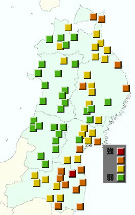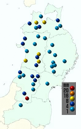 GotoHome Return Prev Next むつ 平均: 0.2℃ 最高: 2.6℃ 最低: -3.9℃ 小田野沢 平均: 0.2℃ 最高: 3.2℃ 最低: -2.0℃ 蟹田 平均: -0.3℃ 最高: 2.3℃ 最低: -2.0℃ 五所川原 平均: -0.3℃ 最高: 0.8℃ 最低: -1.7℃ 青森 平均: -0.3℃ 最高: 1.3℃ 最低: -1.4℃ 六ケ所 平均: -0.4℃ 最高: 1.5℃ 最低: -1.9℃ 鯵ケ沢 平均: 0.8℃ 最高: 2.3℃ 最低: -0.7℃ 弘前 平均: -0.5℃ 最高: 2.1℃ 最低: -2.5℃ 黒石 平均: -0.9℃ 最高: 0.4℃ 最低: -2.3℃ 三沢 平均: -0.4℃ 最高: 1.5℃ 最低: -2.7℃ 十和田 平均: -0.4℃ 最高: 1.2℃ 最低: -2.2℃ 八戸 平均: 0.0℃ 最高: 2.1℃ 最低: -3.0℃ 三戸 平均: -0.8℃ 最高: 2.8℃ 最低: -7.3℃ 能代 平均: 1.1℃ 最高: 2.1℃ 最低: -0.8℃ 大館 平均: -1.1℃ 最高: 1.0℃ 最低: -6.1℃ 鹿角 平均: -1.2℃ 最高: -0.1℃ 最低: -2.9℃ 大潟 平均: 1.0℃ 最高: 2.0℃ 最低: -0.7℃ 阿仁合 平均: -0.7℃ 最高: 0.5℃ 最低: -2.0℃ 秋田 平均: 0.9℃ 最高: 2.7℃ 最低: -0.2℃ 角館 平均: -0.4℃ 最高: 1.4℃ 最低: -4.4℃ 大曲 平均: -0.5℃ 最高: 0.4℃ 最低: -4.4℃ 本荘 平均: 1.4℃ 最高: 2.2℃ 最低: 0.4℃ 横手 平均: -0.8℃ 最高: 0.2℃ 最低: -3.5℃ 湯沢 平均: -0.3℃ 最高: 0.8℃ 最低: -3.5℃ 軽米 平均: -1.1℃ 最高: 0.8℃ 最低: -3.7℃ 久慈 平均: 0.7℃ 最高: 3.3℃ 最低: -3.5℃ 岩手松尾 平均: -1.9℃ 最高: 0.7℃ 最低: -5.8℃ 雫石 平均: -0.5℃ 最高: 0.8℃ 最低: -3.1℃ 盛岡 平均: -1.5℃ 最高: 1.9℃ 最低: -7.7℃ 宮古 平均: 0.3℃ 最高: 5.0℃ 最低: -4.2℃ 紫波 平均: -2.0℃ 最高: 1.5℃ 最低: -8.9℃ 遠野 平均: -1.9℃ 最高: 0.8℃ 最低: -6.0℃ 北上 平均: -0.1℃ 最高: 1.5℃ 最低: -4.1℃ 若柳 平均: -1.1℃ 最高: 0.5℃ 最低: -6.0℃ 江刺 平均: -0.8℃ 最高: 1.6℃ 最低: -7.0℃ 一関 平均: -0.6℃ 最高: 2.3℃ 最低: -5.6℃ 千厩 平均: -3.0℃ 最高: 1.2℃ 最低: -11.0℃ 築舘 平均: -1.5℃ 最高: 3.9℃ 最低: -9.8℃ 米山 平均: -0.5℃ 最高: 4.5℃ 最低: -7.1℃ 古川 平均: 0.9℃ 最高: 3.1℃ 最低: -3.2℃ 大衡 平均: 1.0℃ 最高: 2.2℃ 最低: -1.2℃ 鹿島台 平均: 1.2℃ 最高: 3.2℃ 最低: -2.4℃ 石巻 平均: 1.0℃ 最高: 3.7℃ 最低: -3.9℃ 仙台 平均: 1.3℃ 最高: 欠測 最低: 欠測 白石 平均: 1.8℃ 最高: 4.4℃ 最低: -3.2℃ 亘理 平均: 0.5℃ 最高: 5.7℃ 最低: -5.4℃ 酒田 平均: 2.9℃ 最高: 3.8℃ 最低: 0.5℃ 鶴岡 平均: 2.6℃ 最高: 3.6℃ 最低: 1.1℃ 狩川 平均: 1.6℃ 最高: 2.7℃ 最低: -1.2℃ 新庄 平均: 0.7℃ 最高: 2.1℃ 最低: -2.4℃ 向町 平均: -0.1℃ 最高: 1.4℃ 最低: -2.3℃ 尾花沢 平均: -0.3℃ 最高: 1.2℃ 最低: -3.7℃ 村山 平均: -0.8℃ 最高: 1.4℃ 最低: -4.2℃ 山形 平均: -0.1℃ 最高: 1.9℃ 最低: -3.9℃ 長井 平均: 0.2℃ 最高: 2.1℃ 最低: -2.9℃ 米沢 平均: -0.1℃ 最高: 1.7℃ 最低: -2.0℃ 福島 平均: 2.5℃ 最高: 5.0℃ 最低: -1.2℃ 相馬 平均: 3.2℃ 最高: 5.6℃ 最低: -1.4℃ 喜多方 平均: -0.6℃ 最高: 3.3℃ 最低: -5.6℃ 飯舘 平均: -0.4℃ 最高: 2.3℃ 最低: -4.3℃ 猪苗代 平均: -2.0℃ 最高: 0.8℃ 最低: -4.2℃ 二本松 平均: 2.3℃ 最高: 5.4℃ 最低: -1.2℃ 若松 平均: 0.8℃ 最高: 2.3℃ 最低: -2.3℃ 船引 平均: -0.1℃ 最高: 2.9℃ 最低: -3.5℃ 浪江 平均: 0.2℃ 最高: 7.9℃ 最低: -6.6℃ 郡山 平均: 1.7℃ 最高: 3.1℃ 最低: -0.8℃ 川内 平均: 0.3℃ 最高: 3.5℃ 最低: -2.9℃ 白河 平均: 1.5℃ 最高: 4.6℃ 最低: -1.5℃ 石川 平均: 1.0℃ 最高: 3.2℃ 最低: -2.8℃ 東白川 平均: -1.9℃ 最高: 5.6℃ 最低: -8.1℃ 小名浜 平均: 4.0℃ 最高: 8.0℃ 最低: 0.2℃ むつ : 5.2時間 小田野沢 : 5.7時間 蟹田 : 2.9時間 五所川原 : 0.3時間 青森 : 0.6時間 六ケ所 : 2.7時間 鯵ケ沢 : 0.3時間 弘前 : 1.6時間 黒石 : 0.4時間 三沢 : 4.4時間 十和田 : 2.5時間 八戸 : 4.1時間 三戸 : 2.7時間 能代 : 0.1時間 大館 : 3.5時間 鹿角 : 0.7時間 大潟 : 0.0時間 阿仁合 : 0.3時間 秋田 : 0.0時間 角館 : 0.4時間 大曲 : 0.1時間 本荘 : 0.0時間 横手 : 0.0時間 湯沢 : 0.1時間 軽米 : 3.7時間 久慈 : 6.5時間 岩手松尾 : 4.4時間 雫石 : 5.4時間 盛岡 : 2.9時間 宮古 : 5.2時間 紫波 : 2.8時間 遠野 : 0.6時間 北上 : 1.2時間 若柳 : 0.0時間 江刺 : 0.3時間 一関 : 0.9時間 千厩 : 2.0時間 築舘 : 2.9時間 米山 : 4.8時間 古川 : 4.1時間 大衡 : 0.9時間 鹿島台 : 4.0時間 石巻 : 5.2時間 仙台 : 5.5時間 白石 : 3.5時間 亘理 : 3.0時間 酒田 : 0.2時間 鶴岡 : 0.0時間 狩川 : 0.0時間 新庄 : 0.3時間 向町 : 0.0時間 尾花沢 : 0.0時間 村山 : 0.0時間 山形 : 0.0時間 長井 : 0.0時間 米沢 : 0.0時間 福島 : 7.8時間 相馬 : 6.6時間 喜多方 : 4.9時間 飯舘 : 8.2時間 猪苗代 : 4.2時間 二本松 : 7.3時間 若松 : 1.4時間 船引 : 6.4時間 浪江 : 7.7時間 郡山 : 2.5時間 川内 : 6.5時間 白河 : 4.9時間 石川 : 1.2時間 東白川 : 7.0時間 小名浜 : 5.7時間 むつ : 0.0mm 小田野沢 : 0.0mm 蟹田 : 2.0mm 五所川原 : 11.5mm 青森 : 9.5mm 六ケ所 : 6.0mm 鯵ケ沢 : 5.5mm 弘前 : 2.0mm 黒石 : 6.0mm 三沢 : 1.5mm 十和田 : 1.0mm 八戸 : 0.0mm 三戸 : 0.0mm 能代 : 4.0mm 大館 : 1.5mm 鹿角 : 2.5mm 大潟 : 4.0mm 阿仁合 : 3.0mm 秋田 : 3.5mm 角館 : 8.5mm 大曲 : 6.5mm 本荘 : 11.5mm 横手 : 13.5mm 湯沢 : 6.0mm 軽米 : 0.0mm 久慈 : 0.0mm 岩手松尾 : 1.0mm 雫石 : 0.5mm 盛岡 : 0.0mm 宮古 : 0.0mm 紫波 : 0.5mm 遠野 : 0.5mm 北上 : 1.0mm 若柳 : 2.5mm 江刺 : 1.5mm 一関 : 2.0mm 千厩 : 0.0mm 築舘 : 0.0mm 米山 : 0.0mm 古川 : 0.0mm 大衡 : 0.5mm 鹿島台 : 0.0mm 石巻 : 0.0mm 仙台 : 0.0mm 白石 : 0.0mm 亘理 : 0.0m