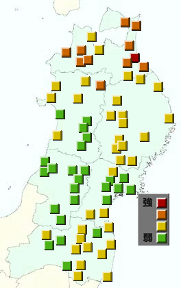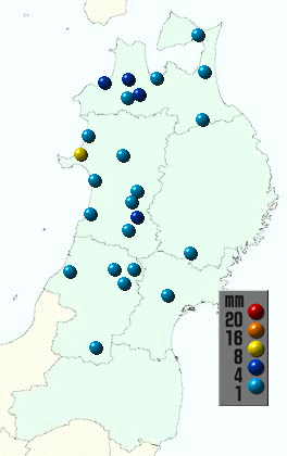 GotoHome Return Prev Next むつ 平均: -1.6℃ 最高: 3.7℃ 最低: -7.9℃ 小田野沢 平均: -0.4℃ 最高: 3.9℃ 最低: -5.5℃ 蟹田 平均: -2.3℃ 最高: 2.9℃ 最低: -8.2℃ 五所川原 平均: -1.0℃ 最高: 4.3℃ 最低: -7.9℃ 青森 平均: 0.0℃ 最高: 3.7℃ 最低: -4.3℃ 六ケ所 平均: -1.1℃ 最高: 3.1℃ 最低: -4.9℃ 鯵ケ沢 平均: 0.2℃ 最高: 3.6℃ 最低: -4.7℃ 弘前 平均: -0.3℃ 最高: 3.3℃ 最低: -4.8℃ 黒石 平均: -1.3℃ 最高: 2.1℃ 最低: -7.5℃ 三沢 平均: 0.3℃ 最高: 4.0℃ 最低: -3.4℃ 十和田 平均: -1.2℃ 最高: 2.9℃ 最低: -7.6℃ 八戸 平均: 1.2℃ 最高: 4.0℃ 最低: -2.2℃ 三戸 平均: -0.6℃ 最高: 3.9℃ 最低: -5.7℃ 能代 平均: 0.7℃ 最高: 3.4℃ 最低: -2.6℃ 大館 平均: -0.8℃ 最高: 3.5℃ 最低: -5.2℃ 鹿角 平均: -2.0℃ 最高: 2.6℃ 最低: -9.5℃ 大潟 平均: -0.3℃ 最高: 2.8℃ 最低: -4.9℃ 阿仁合 平均: -1.1℃ 最高: 2.1℃ 最低: -5.4℃ 秋田 平均: 0.7℃ 最高: 1.9℃ 最低: -2.4℃ 角館 平均: -0.7℃ 最高: 1.7℃ 最低: -3.7℃ 大曲 平均: -0.5℃ 最高: 1.6℃ 最低: -6.2℃ 本荘 平均: 0.9℃ 最高: 2.9℃ 最低: -2.7℃ 横手 平均: 0.0℃ 最高: 1.7℃ 最低: -3.3℃ 湯沢 平均: 0.1℃ 最高: 1.4℃ 最低: -1.9℃ 軽米 平均: -1.3℃ 最高: 2.4℃ 最低: -6.1℃ 久慈 平均: 1.4℃ 最高: 4.4℃ 最低: -3.4℃ 岩手松尾 平均: -1.9℃ 最高: 2.8℃ 最低: -8.3℃ 雫石 平均: -1.5℃ 最高: 3.0℃ 最低: -10.4℃ 盛岡 平均: 0.0℃ 最高: 3.9℃ 最低: -3.9℃ 宮古 平均: 1.5℃ 最高: 5.8℃ 最低: -1.7℃ 紫波 平均: -0.7℃ 最高: 4.0℃ 最低: -4.3℃ 遠野 平均: -1.2℃ 最高: 3.1℃ 最低: -5.0℃ 北上 平均: 0.6℃ 最高: 3.4℃ 最低: -2.5℃ 若柳 平均: 0.1℃ 最高: 3.3℃ 最低: -2.3℃ 江刺 平均: 0.7℃ 最高: 4.2℃ 最低: -3.0℃ 一関 平均: 1.1℃ 最高: 4.1℃ 最低: -1.3℃ 千厩 平均: 0.7℃ 最高: 3.9℃ 最低: -1.6℃ 築舘 平均: -0.4℃ 最高: 3.8℃ 最低: -5.5℃ 米山 平均: -0.8℃ 最高: 3.1℃ 最低: -6.1℃ 古川 平均: -1.2℃ 最高: 1.7℃ 最低: -4.8℃ 大衡 平均: 0.3℃ 最高: 2.7℃ 最低: -2.2℃ 鹿島台 平均: -0.4℃ 最高: 2.8℃ 最低: -4.2℃ 石巻 平均: 1.2℃ 最高: 3.9℃ 最低: -1.6℃ 仙台 平均: 2.4℃ 最高: 4.3℃ 最低: 0.0℃ 白石 平均: 1.3℃ 最高: 4.9℃ 最低: -1.5℃ 亘理 平均: 1.9℃ 最高: 5.9℃ 最低: -1.5℃ 酒田 平均: 3.2℃ 最高: 5.7℃ 最低: 0.4℃ 鶴岡 平均: 2.7℃ 最高: 3.9℃ 最低: -0.5℃ 狩川 平均: 2.1℃ 最高: 3.0℃ 最低: 1.1℃ 新庄 平均: 0.4℃ 最高: 1.9℃ 最低: -2.2℃ 向町 平均: 0.5℃ 最高: 2.5℃ 最低: -2.9℃ 尾花沢 平均: 0.2℃ 最高: 1.8℃ 最低: -3.5℃ 村山 平均: 0.1℃ 最高: 1.7℃ 最低: -2.0℃ 山形 平均: 0.6℃ 最高: 2.0℃ 最低: -0.8℃ 長井 平均: 0.7℃ 最高: 2.5℃ 最低: -0.8℃ 米沢 平均: 1.5℃ 最高: 4.1℃ 最低: -0.1℃ 福島 平均: 2.6℃ 最高: 6.4℃ 最低: 0.3℃ 相馬 平均: 2.6℃ 最高: 7.4℃ 最低: -0.1℃ 喜多方 平均: -0.8℃ 最高: 3.5℃ 最低: -6.1℃ 飯舘 平均: -0.4℃ 最高: 3.3℃ 最低: -4.6℃ 猪苗代 平均: -2.2℃ 最高: 0.5℃ 最低: -6.7℃ 二本松 平均: 0.7℃ 最高: 4.3℃ 最低: -3.2℃ 若松 平均: 1.3℃ 最高: 3.5℃ 最低: -1.4℃ 船引 平均: 0.2℃ 最高: 3.1℃ 最低: -1.9℃ 浪江 平均: 2.4℃ 最高: 7.1℃ 最低: -3.0℃ 郡山 平均: 2.1℃ 最高: 4.7℃ 最低: 0.3℃ 川内 平均: -1.4℃ 最高: 4.2℃ 最低: -6.4℃ 白河 平均: 1.7℃ 最高: 4.2℃ 最低: -1.3℃ 石川 平均: 1.0℃ 最高: 4.7℃ 最低: -2.2℃ 東白川 平均: -0.1℃ 最高: 4.6℃ 最低: -4.8℃ 小名浜 平均: 4.8℃ 最高: 8.5℃ 最低: 0.4℃ むつ : 5.5時間 小田野沢 : 7.6時間 蟹田 : 4.3時間 五所川原 : 6.8時間 青森 : 4.6時間 六ケ所 : 7.6時間 鯵ケ沢 : 6.7時間 弘前 : 7.0時間 黒石 : 7.2時間 三沢 : 8.4時間 十和田 : 7.8時間 八戸 : 6.7時間 三戸 : 3.2時間 能代 : 2.8時間 大館 : 3.8時間 鹿角 : 6.7時間 大潟 : 2.0時間 阿仁合 : 3.4時間 秋田 : 0.0時間 角館 : 0.8時間 大曲 : 0.1時間 本荘 : 1.0時間 横手 : 0.3時間 湯沢 : 0.5時間 軽米 : 4.5時間 久慈 : 3.6時間 岩手松尾 : 3.2時間 雫石 : 3.4時間 盛岡 : 4.1時間 宮古 : 4.7時間 紫波 : 4.0時間 遠野 : 4.2時間 北上 : 2.6時間 若柳 : 1.4時間 江刺 : 3.4時間 一関 : 1.9時間 千厩 : 3.7時間 築舘 : 1.2時間 米山 : 0.8時間 古川 : 0.0時間 大衡 : 0.0時間 鹿島台 : 0.0時間 石巻 : 0.4時間 仙台 : 0.1時間 白石 : 2.1時間 亘理 : 1.4時間 酒田 : 0.4時間 鶴岡 : 0.0時間 狩川 : 0.0時間 新庄 : 0.0時間 向町 : 0.2時間 尾花沢 : 0.0時間 村山 : 0.0時間 山形 : 0.0時間 長井 : 0.7時間 米沢 : 0.8時間 福島 : 2.1時間 相馬 : 1.2時間 喜多方 : 1.0時間 飯舘 : 0.0時間 猪苗代 : 0.5時間 二本松 : 2.4時間 若松 : 0.0時間 船引 : 4.4時間 浪江 : 3.8時間 郡山 : 1.4時間 川内 : 4.9時間 白河 : 0.8時間 石川 : 1.6時間 東白川 : 2.6時間 小名浜 : 3.9時間 むつ : 0.5mm 小田野沢 : 0.0mm 蟹田 : 0.0mm 五所川原 : 4.5mm 青森 : 0.5mm 六ケ所 : 3.5mm 鯵ケ沢 : 4.5mm 弘前 : 3.0mm 黒石 : 4.0mm 三沢 : 0.0mm 十和田 : 0.0mm 八戸 : 0.0mm 三戸 : 0.5mm 能代 : 2.0mm 大館 : 0.0mm 鹿角 : 0.0mm 大潟 : 8.5mm 阿仁合 : 0.5mm 秋田 : 2.0mm 角館 : 0.5mm 大曲 : 0.5mm 本荘 : 2.0mm 横手 : 4.0mm 湯沢 : 2.5mm 軽米 : 0.0mm 久慈 : 0.0mm 岩手松尾 : 0.0mm 雫石 : 0.0mm 盛岡 : 0.0mm 宮古 : 0.0mm 紫波 : 0.0mm 遠野 : 0.0mm 北上 : 0.0mm 若柳 : 0.0mm 江刺 : 0.0mm 一関 : 1.0mm 千厩 : 0.0mm 築舘 : 0.0mm 米山 : 0.0mm 古川 : 0.0mm 大衡 : 1.0mm 鹿島台 : 0.0mm 石巻 : 0.0mm 仙台 : 0.0mm 白石 : 0.0mm 亘理 : 0.0mm 酒田 : 0.0m