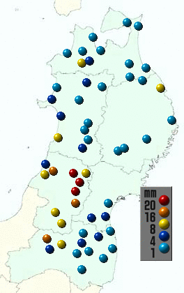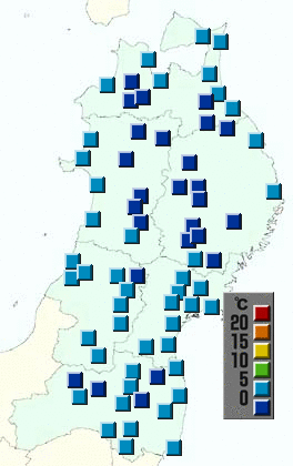 GotoHome Return Prev Next むつ 平均: 0.7℃ 最高: 3.4℃ 最低: -1.3℃ 小田野沢 平均: 0.4℃ 最高: 2.7℃ 最低: -2.4℃ 蟹田 平均: 0.3℃ 最高: 2.1℃ 最低: -3.4℃ 五所川原 平均: -1.6℃ 最高: 1.5℃ 最低: -4.9℃ 青森 平均: 0.3℃ 最高: 2.2℃ 最低: -2.7℃ 六ケ所 平均: 0.2℃ 最高: 2.7℃ 最低: -2.6℃ 鯵ケ沢 平均: 0.9℃ 最高: 3.4℃ 最低: -2.9℃ 弘前 平均: -1.2℃ 最高: 0.4℃ 最低: -3.2℃ 黒石 平均: -2.1℃ 最高: 0.0℃ 最低: -4.1℃ 三沢 平均: 0.7℃ 最高: 3.7℃ 最低: -2.9℃ 十和田 平均: -0.1℃ 最高: 2.4℃ 最低: -3.1℃ 八戸 平均: 0.8℃ 最高: 4.4℃ 最低: -2.3℃ 三戸 平均: -0.2℃ 最高: 3.0℃ 最低: -2.5℃ 能代 平均: 0.6℃ 最高: 2.8℃ 最低: -1.7℃ 大館 平均: -0.8℃ 最高: 1.2℃ 最低: -3.3℃ 鹿角 平均: -1.2℃ 最高: 0.5℃ 最低: -3.8℃ 大潟 平均: 0.9℃ 最高: 3.4℃ 最低: -2.6℃ 阿仁合 平均: -1.0℃ 最高: 1.0℃ 最低: -3.0℃ 秋田 平均: 0.5℃ 最高: 2.1℃ 最低: -1.6℃ 角館 平均: -0.2℃ 最高: 1.9℃ 最低: -1.9℃ 大曲 平均: -0.6℃ 最高: 0.8℃ 最低: -2.6℃ 本荘 平均: 1.1℃ 最高: 2.7℃ 最低: -0.4℃ 横手 平均: -0.2℃ 最高: 1.0℃ 最低: -2.5℃ 湯沢 平均: 0.1℃ 最高: 1.8℃ 最低: -2.3℃ 軽米 平均: -0.7℃ 最高: 1.4℃ 最低: -3.8℃ 久慈 平均: 1.0℃ 最高: 3.4℃ 最低: -1.3℃ 岩手松尾 平均: -1.9℃ 最高: 1.1℃ 最低: -4.1℃ 雫石 平均: -1.0℃ 最高: 1.5℃ 最低: -4.9℃ 盛岡 平均: -0.4℃ 最高: 2.0℃ 最低: -2.8℃ 宮古 平均: 1.7℃ 最高: 4.9℃ 最低: -1.5℃ 紫波 平均: -1.0℃ 最高: 1.9℃ 最低: -2.9℃ 遠野 平均: -0.3℃ 最高: 2.4℃ 最低: -3.2℃ 北上 平均: -0.5℃ 最高: 3.2℃ 最低: -3.9℃ 若柳 平均: -0.6℃ 最高: 3.5℃ 最低: -4.0℃ 江刺 平均: -0.2℃ 最高: 3.7℃ 最低: -3.5℃ 一関 平均: 1.1℃ 最高: 3.9℃ 最低: -1.0℃ 千厩 平均: -0.1℃ 最高: 3.2℃ 最低: -2.7℃ 築舘 平均: 1.2℃ 最高: 3.9℃ 最低: -2.4℃ 米山 平均: 1.2℃ 最高: 5.0℃ 最低: -1.7℃ 古川 平均: 1.3℃ 最高: 2.9℃ 最低: -1.2℃ 大衡 平均: 1.8℃ 最高: 3.9℃ 最低: -1.3℃ 鹿島台 平均: 2.0℃ 最高: 4.3℃ 最低: -0.2℃ 石巻 平均: 1.9℃ 最高: 5.0℃ 最低: -0.3℃ 仙台 平均: 2.1℃ 最高: 3.9℃ 最低: -0.5℃ 白石 平均: 1.7℃ 最高: 4.3℃ 最低: 0.3℃ 亘理 平均: 2.2℃ 最高: 5.3℃ 最低: 0.1℃ 酒田 平均: 2.7℃ 最高: 4.5℃ 最低: -0.7℃ 鶴岡 平均: 1.9℃ 最高: 4.3℃ 最低: -0.5℃ 狩川 平均: 1.2℃ 最高: 3.5℃ 最低: -1.0℃ 新庄 平均: 0.0℃ 最高: 1.4℃ 最低: -1.7℃ 向町 平均: -0.3℃ 最高: 1.0℃ 最低: -2.8℃ 尾花沢 平均: 0.1℃ 最高: 1.5℃ 最低: -1.5℃ 村山 平均: 0.0℃ 最高: 1.6℃ 最低: -1.4℃ 山形 平均: 0.2℃ 最高: 0.9℃ 最低: -0.9℃ 長井 平均: 0.3℃ 最高: 2.4℃ 最低: -1.3℃ 米沢 平均: 0.6℃ 最高: 2.4℃ 最低: -1.4℃ 福島 平均: 2.2℃ 最高: 4.9℃ 最低: 0.8℃ 相馬 平均: 3.0℃ 最高: 6.5℃ 最低: 0.5℃ 喜多方 平均: -0.2℃ 最高: 1.3℃ 最低: -2.0℃ 飯舘 平均: -0.5℃ 最高: 2.1℃ 最低: -2.8℃ 猪苗代 平均: -2.0℃ 最高: -1.1℃ 最低: -4.1℃ 二本松 平均: 0.9℃ 最高: 4.2℃ 最低: -1.6℃ 若松 平均: 0.2℃ 最高: 2.0℃ 最低: -1.9℃ 船引 平均: -0.6℃ 最高: 1.9℃ 最低: -2.3℃ 浪江 平均: 3.1℃ 最高: 6.9℃ 最低: -2.6℃ 郡山 平均: 1.1℃ 最高: 3.6℃ 最低: -0.5℃ 川内 平均: 0.0℃ 最高: 2.9℃ 最低: -1.7℃ 白河 平均: 0.4℃ 最高: 3.7℃ 最低: -1.4℃ 石川 平均: 0.8℃ 最高: 4.0℃ 最低: -1.6℃ 東白川 平均: 0.0℃ 最高: 5.2℃ 最低: -3.5℃ 小名浜 平均: 4.8℃ 最高: 8.5℃ 最低: 1.8℃ むつ : 3.2時間 小田野沢 : 2.8時間 蟹田 : 0.4時間 五所川原 : 0.0時間 青森 : 0.3時間 六ケ所 : 4.2時間 鯵ケ沢 : 0.0時間 弘前 : 0.0時間 黒石 : 0.3時間 三沢 : 5.6時間 十和田 : 2.7時間 八戸 : 4.4時間 三戸 : 2.0時間 能代 : 0.1時間 大館 : 0.1時間 鹿角 : 0.3時間 大潟 : 0.1時間 阿仁合 : 0.3時間 秋田 : 0.0時間 角館 : 0.3時間 大曲 : 0.0時間 本荘 : 0.0時間 横手 : 0.0時間 湯沢 : 0.0時間 軽米 : 3.3時間 久慈 : 5.0時間 岩手松尾 : 1.2時間 雫石 : 1.7時間 盛岡 : 4.4時間 宮古 : 6.2時間 紫波 : 2.6時間 遠野 : 6.1時間 北上 : 3.5時間 若柳 : 1.6時間 江刺 : 4.6時間 一関 : 2.7時間 千厩 : 3.3時間 築舘 : 1.8時間 米山 : 3.3時間 古川 : 2.6時間 大衡 : 1.3時間 鹿島台 : 2.5時間 石巻 : 4.7時間 仙台 : 1.9時間 白石 : 1.9時間 亘理 : 4.0時間 酒田 : 0.3時間 鶴岡 : 0.0時間 狩川 : 0.0時間 新庄 : 0.0時間 向町 : 0.2時間 尾花沢 : 0.0時間 村山 : 0.0時間 山形 : 0.0時間 長井 : 1.5時間 米沢 : 0.4時間 福島 : 2.9時間 相馬 : 3.4時間 喜多方 : 0.5時間 飯舘 : 4.4時間 猪苗代 : 0.0時間 二本松 : 2.5時間 若松 : 0.4時間 船引 : 3.3時間 浪江 : 6.0時間 郡山 : 3.6時間 川内 : 5.3時間 白河 : 6.4時間 石川 : 5.3時間 東白川 : 8.1時間 小名浜 : 8.6時間 むつ : 1.5mm 小田野沢 : 3.0mm 蟹田 : 0.5mm 五所川原 : 1.5mm 青森 : 3.0mm 六ケ所 : 0.0mm 鯵ケ沢 : 3.0mm 弘前 : 12.5mm 黒石 : 5.0mm 三沢 : 0.0mm 十和田 : 0.5mm 八戸 : 2.5mm 三戸 : 0.5mm 能代 : 2.0mm 大館 : 5.0mm 鹿角 : 1.5mm 大潟 : 5.5mm 阿仁合 : 3.0mm 秋田 : 6.5mm 角館 : 1.0mm 大曲 : 0.5mm 本荘 : 13.5mm 横手 : 3.5mm 湯沢 : 4.0mm 軽米 : 0.5mm 久慈 : 8.0mm 岩手松尾 : 0.0mm 雫石 : 0.0mm 盛岡 : 0.0mm 宮古 : 3.0mm 紫波 : 0.0mm 遠野 : 0.5mm 北上 : 0.0mm 若柳 : 0.5mm 江刺 : 0.5mm 一関 : 0.0mm 千厩 : 0.0mm 築舘 : 0.0mm 米山 : 0.0mm 古川 : 0.0mm 大衡 : 0.0mm 鹿島台 : 0.0mm 石巻 : 0.0mm 仙台 : 1.0mm 白石 : 4.0mm 亘理 : 5.5mm 酒田 : 6.0m