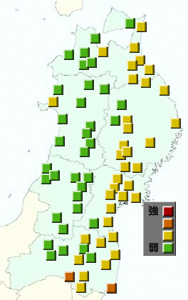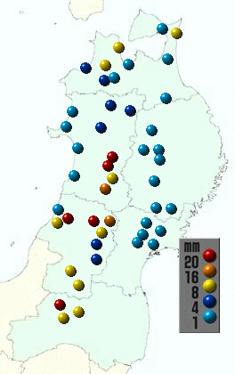 GotoHome Return Prev Next むつ 平均: -3.7℃ 最高: -1.7℃ 最低: -6.3℃ 小田野沢 平均: -3.7℃ 最高: -1.1℃ 最低: -7.0℃ 蟹田 平均: -4.4℃ 最高: -2.6℃ 最低: -6.9℃ 五所川原 平均: -4.3℃ 最高: -2.6℃ 最低: -5.9℃ 青森 平均: -3.8℃ 最高: -1.2℃ 最低: -5.3℃ 六ケ所 平均: -5.2℃ 最高: -1.2℃ 最低: -8.4℃ 鯵ケ沢 平均: -3.8℃ 最高: -2.6℃ 最低: -4.9℃ 弘前 平均: -4.6℃ 最高: -1.4℃ 最低: -7.9℃ 黒石 平均: -4.6℃ 最高: -2.4℃ 最低: -6.8℃ 三沢 平均: -3.7℃ 最高: 0.2℃ 最低: -7.0℃ 十和田 平均: -4.1℃ 最高: -1.0℃ 最低: -8.4℃ 八戸 平均: -2.5℃ 最高: 0.9℃ 最低: -4.5℃ 三戸 平均: -3.7℃ 最高: -0.4℃ 最低: -8.6℃ 能代 平均: -2.6℃ 最高: -0.9℃ 最低: -4.2℃ 大館 平均: -4.2℃ 最高: -1.8℃ 最低: -6.7℃ 鹿角 平均: -4.7℃ 最高: -2.5℃ 最低: -6.6℃ 大潟 平均: -2.8℃ 最高: -1.4℃ 最低: -5.1℃ 阿仁合 平均: -4.5℃ 最高: -3.2℃ 最低: -5.6℃ 秋田 平均: -1.5℃ 最高: 0.3℃ 最低: -3.1℃ 角館 平均: -3.8℃ 最高: -2.7℃ 最低: -4.8℃ 大曲 平均: -3.6℃ 最高: -2.0℃ 最低: -4.7℃ 本荘 平均: -0.9℃ 最高: 0.3℃ 最低: -2.7℃ 横手 平均: -3.2℃ 最高: -1.8℃ 最低: -3.9℃ 湯沢 平均: -3.5℃ 最高: -2.3℃ 最低: -4.1℃ 軽米 平均: -5.0℃ 最高: -1.1℃ 最低: -9.7℃ 久慈 平均: -4.0℃ 最高: 2.4℃ 最低: -8.6℃ 岩手松尾 平均: -5.4℃ 最高: -2.4℃ 最低: -10.6℃ 雫石 平均: -4.8℃ 最高: -1.8℃ 最低: -7.3℃ 盛岡 平均: -4.0℃ 最高: -1.0℃ 最低: -5.3℃ 宮古 平均: -2.5℃ 最高: 2.1℃ 最低: -5.2℃ 紫波 平均: -4.4℃ 最高: -1.5℃ 最低: -5.8℃ 遠野 平均: -6.4℃ 最高: -1.8℃ 最低: -11.1℃ 北上 平均: -3.6℃ 最高: -0.9℃ 最低: -5.2℃ 若柳 平均: -4.7℃ 最高: -2.1℃ 最低: -6.2℃ 江刺 平均: -4.6℃ 最高: -0.6℃ 最低: -7.4℃ 一関 平均: -3.6℃ 最高: -0.1℃ 最低: -6.3℃ 千厩 平均: -4.7℃ 最高: -0.1℃ 最低: -8.6℃ 築舘 平均: -3.7℃ 最高: 0.6℃ 最低: -6.3℃ 米山 平均: -2.7℃ 最高: 1.1℃ 最低: -5.8℃ 古川 平均: -3.7℃ 最高: -0.2℃ 最低: -6.8℃ 大衡 平均: -3.0℃ 最高: 0.4℃ 最低: -4.7℃ 鹿島台 平均: -2.2℃ 最高: 0.9℃ 最低: -4.7℃ 石巻 平均: -1.9℃ 最高: 1.2℃ 最低: -3.6℃ 仙台 平均: -0.9℃ 最高: 2.0℃ 最低: -3.5℃ 白石 平均: -1.2℃ 最高: 1.5℃ 最低: -2.8℃ 亘理 平均: -0.5℃ 最高: 2.5℃ 最低: -2.5℃ 酒田 平均: -0.4℃ 最高: 0.7℃ 最低: -2.1℃ 鶴岡 平均: -1.4℃ 最高: 0.2℃ 最低: -2.9℃ 狩川 平均: -2.6℃ 最高: -1.6℃ 最低: -3.6℃ 新庄 平均: -3.2℃ 最高: -2.5℃ 最低: -3.6℃ 向町 平均: -3.9℃ 最高: -2.6℃ 最低: -4.6℃ 尾花沢 平均: -3.1℃ 最高: -1.5℃ 最低: -3.7℃ 村山 平均: -2.9℃ 最高: -1.9℃ 最低: -3.5℃ 山形 平均: -2.6℃ 最高: -1.5℃ 最低: -3.3℃ 長井 平均: -3.5℃ 最高: -1.6℃ 最低: -4.4℃ 米沢 平均: -2.7℃ 最高: -1.5℃ 最低: -3.6℃ 福島 平均: -0.4℃ 最高: 2.3℃ 最低: -1.6℃ 相馬 平均: -1.0℃ 最高: 2.8℃ 最低: -4.8℃ 喜多方 平均: -3.0℃ 最高: -1.6℃ 最低: -4.1℃ 飯舘 平均: -4.1℃ 最高: -0.5℃ 最低: -7.8℃ 猪苗代 平均: -5.0℃ 最高: -4.3℃ 最低: -5.9℃ 二本松 平均: -2.0℃ 最高: 0.5℃ 最低: -3.7℃ 若松 平均: -2.6℃ 最高: -1.6℃ 最低: -3.6℃ 船引 平均: -4.5℃ 最高: -0.7℃ 最低: -7.6℃ 浪江 平均: -0.6℃ 最高: 3.2℃ 最低: -4.9℃ 郡山 平均: -1.5℃ 最高: 0.7℃ 最低: -2.9℃ 川内 平均: -3.7℃ 最高: 0.7℃ 最低: -6.9℃ 白河 平均: -2.9℃ 最高: 1.3℃ 最低: -6.1℃ 石川 平均: -2.7℃ 最高: 1.4℃ 最低: -5.5℃ 東白川 平均: -2.6℃ 最高: 1.2℃ 最低: -6.4℃ 小名浜 平均: 0.8℃ 最高: 5.1℃ 最低: -2.7℃ むつ : 0.9時間 小田野沢 : 3.5時間 蟹田 : 0.1時間 五所川原 : 0.2時間 青森 : 1.3時間 六ケ所 : 2.0時間 鯵ケ沢 : 0.4時間 弘前 : 0.7時間 黒石 : 0.7時間 三沢 : 3.4時間 十和田 : 3.3時間 八戸 : 3.2時間 三戸 : 1.8時間 能代 : 0.9時間 大館 : 0.9時間 鹿角 : 0.0時間 大潟 : 1.4時間 阿仁合 : 0.0時間 秋田 : 0.7時間 角館 : 0.0時間 大曲 : 0.4時間 本荘 : 0.4時間 横手 : 0.3時間 湯沢 : 0.6時間 軽米 : 2.4時間 久慈 : 2.5時間 岩手松尾 : 0.5時間 雫石 : 0.5時間 盛岡 : 2.2時間 宮古 : 3.2時間 紫波 : 1.9時間 遠野 : 3.1時間 北上 : 2.9時間 若柳 : 2.2時間 江刺 : 3.1時間 一関 : 3.0時間 千厩 : 3.2時間 築舘 : 2.7時間 米山 : 4.1時間 古川 : 3.6時間 大衡 : 3.0時間 鹿島台 : 4.8時間 石巻 : 2.7時間 仙台 : 4.8時間 白石 : 0.7時間 亘理 : 2.9時間 酒田 : 0.6時間 鶴岡 : 0.5時間 狩川 : 0.2時間 新庄 : 0.2時間 向町 : 0.3時間 尾花沢 : 0.0時間 村山 : 0.5時間 山形 : 0.4時間 長井 : 0.2時間 米沢 : 0.0時間 福島 : 1.7時間 相馬 : 2.5時間 喜多方 : 0.0時間 飯舘 : 2.6時間 猪苗代 : 0.0時間 二本松 : 0.7時間 若松 : 0.0時間 船引 : 0.9時間 浪江 : 3.3時間 郡山 : 2.4時間 川内 : 3.8時間 白河 : 5.0時間 石川 : 4.6時間 東白川 : 3.1時間 小名浜 : 5.0時間 むつ : 3.5mm 小田野沢 : 8.0mm 蟹田 : 10.0mm 五所川原 : 9.0mm 青森 : 1.0mm 六ケ所 : 0.5mm 鯵ケ沢 : 6.5mm 弘前 : 4.5mm 黒石 : 1.5mm 三沢 : 0.0mm 十和田 : 0.0mm 八戸 : 0.0mm 三戸 : 0.5mm 能代 : 3.0mm 大館 : 7.5mm 鹿角 : 5.0mm 大潟 : 1.0mm 阿仁合 : 7.0mm 秋田 : 3.5mm 角館 : 25.5mm 大曲 : 22.0mm 本荘 : 1.5mm 横手 : 15.5mm 湯沢 : 16.0mm 軽米 : 0.0mm 久慈 : 0.0mm 岩手松尾 : 0.5mm 雫石 : 3.0mm 盛岡 : 2.0mm 宮古 : 0.0mm 紫波 : 2.0mm 遠野 : 0.0mm 北上 : 1.0mm 若柳 : 0.0mm 江刺 : 0.0mm 一関 : 3.5mm 千厩 : 3.0mm 築舘 : 2.5mm 米山 : 1.5mm 古川 : 2.0mm 大衡 :