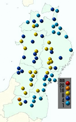GotoHome Return Prev Next むつ 平均: -1.2℃ 最高: 1.9℃ 最低: -5.9℃ 小田野沢 平均: -0.6℃ 最高: 1.9℃ 最低: -7.0℃ 蟹田 平均: -1.1℃ 最高: 2.5℃ 最低: -6.9℃ 五所川原 平均: -2.1℃ 最高: 2.2℃ 最低: -7.0℃ 青森 平均: -1.3℃ 最高: 1.5℃ 最低: -6.7℃ 六ケ所 平均: -3.5℃ 最高: 0.7℃ 最低: -10.2℃ 鯵ケ沢 平均: -1.4℃ 最高: 2.9℃ 最低: -6.1℃ 弘前 平均: -2.8℃ 最高: 2.1℃ 最低: -8.1℃ 黒石 平均: -2.1℃ 最高: 2.0℃ 最低: -6.6℃ 三沢 平均: -2.1℃ 最高: 1.7℃ 最低: -5.5℃ 十和田 平均: -2.7℃ 最高: 3.1℃ 最低: -9.4℃ 八戸 平均: -1.9℃ 最高: 3.7℃ 最低: -6.7℃ 三戸 平均: -2.4℃ 最高: 2.9℃ 最低: -8.6℃ 能代 平均: -0.4℃ 最高: 5.9℃ 最低: -4.5℃ 大館 平均: -3.0℃ 最高: 4.0℃ 最低: -9.5℃ 鹿角 平均: -4.2℃ 最高: 3.7℃ 最低: -11.3℃ 大潟 平均: -0.3℃ 最高: 5.9℃ 最低: -5.5℃ 阿仁合 平均: -1.4℃ 最高: 4.0℃ 最低: -6.1℃ 秋田 平均: 0.3℃ 最高: 6.9℃ 最低: -2.8℃ 角館 平均: -1.7℃ 最高: 4.4℃ 最低: -7.5℃ 大曲 平均: -1.8℃ 最高: 4.6℃ 最低: -8.3℃ 本荘 平均: 1.1℃ 最高: 5.5℃ 最低: -3.8℃ 横手 平均: -1.0℃ 最高: 4.1℃ 最低: -6.6℃ 湯沢 平均: -0.8℃ 最高: 3.8℃ 最低: -6.2℃ 軽米 平均: -3.7℃ 最高: 1.9℃ 最低: -9.7℃ 久慈 平均: -1.3℃ 最高: 4.6℃ 最低: -7.4℃ 岩手松尾 平均: -3.3℃ 最高: 3.5℃ 最低: -7.7℃ 雫石 平均: -4.6℃ 最高: 4.0℃ 最低: -13.4℃ 盛岡 平均: -2.8℃ 最高: 3.7℃ 最低: -7.3℃ 宮古 平均: -0.2℃ 最高: 4.6℃ 最低: -4.0℃ 紫波 平均: -3.2℃ 最高: 3.2℃ 最低: -7.3℃ 遠野 平均: -3.9℃ 最高: 1.5℃ 最低: -9.5℃ 北上 平均: -1.9℃ 最高: 3.8℃ 最低: -6.3℃ 若柳 平均: -2.2℃ 最高: 3.3℃ 最低: -7.2℃ 江刺 平均: -2.1℃ 最高: 4.1℃ 最低: -7.0℃ 一関 平均: -1.1℃ 最高: 4.1℃ 最低: -5.0℃ 千厩 平均: -1.5℃ 最高: 3.2℃ 最低: -5.7℃ 築舘 平均: -1.1℃ 最高: 3.8℃ 最低: -4.6℃ 米山 平均: -0.1℃ 最高: 5.4℃ 最低: -3.6℃ 古川 平均: -0.6℃ 最高: 2.5℃ 最低: -3.4℃ 大衡 平均: -0.2℃ 最高: 3.7℃ 最低: -4.6℃ 鹿島台 平均: 0.0℃ 最高: 5.4℃ 最低: -5.1℃ 石巻 平均: 1.6℃ 最高: 6.1℃ 最低: -2.8℃ 仙台 平均: 1.2℃ 最高: 5.6℃ 最低: -1.5℃ 白石 平均: 0.3℃ 最高: 3.4℃ 最低: -2.9℃ 亘理 平均: 1.5℃ 最高: 6.7℃ 最低: -1.8℃ 酒田 平均: 1.9℃ 最高: 5.8℃ 最低: -2.4℃ 鶴岡 平均: 1.2℃ 最高: 5.6℃ 最低: -4.1℃ 狩川 平均: 0.9℃ 最高: 4.5℃ 最低: -1.7℃ 新庄 平均: -0.7℃ 最高: 3.3℃ 最低: -7.1℃ 向町 平均: -2.1℃ 最高: 2.9℃ 最低: -6.4℃ 尾花沢 平均: -0.6℃ 最高: 3.3℃ 最低: -4.2℃ 村山 平均: -0.7℃ 最高: 3.7℃ 最低: -3.7℃ 山形 平均: -0.2℃ 最高: 5.5℃ 最低: -2.6℃ 長井 平均: -1.2℃ 最高: 4.4℃ 最低: -5.2℃ 米沢 平均: -0.8℃ 最高: 3.3℃ 最低: -4.6℃ 福島 平均: 1.9℃ 最高: 7.1℃ 最低: -1.9℃ 相馬 平均: 3.4℃ 最高: 10.0℃ 最低: -1.7℃ 喜多方 平均: -1.7℃ 最高: 2.1℃ 最低: -7.7℃ 飯舘 平均: -1.1℃ 最高: 4.9℃ 最低: -8.4℃ 猪苗代 平均: -1.9℃ 最高: 1.3℃ 最低: -7.8℃ 二本松 平均: 1.4℃ 最高: 7.1℃ 最低: -3.1℃ 若松 平均: -1.3℃ 最高: 4.9℃ 最低: -5.6℃ 船引 平均: 0.2℃ 最高: 5.0℃ 最低: -4.8℃ 浪江 平均: 4.3℃ 最高: 13.6℃ 最低: -3.2℃ 郡山 平均: 1.4℃ 最高: 7.7℃ 最低: -2.9℃ 川内 平均: 0.7℃ 最高: 8.9℃ 最低: -6.8℃ 白河 平均: 2.3℃ 最高: 8.9℃ 最低: -3.1℃ 石川 平均: 2.4℃ 最高: 11.6℃ 最低: -3.7℃ 東白川 平均: 2.5℃ 最高: 12.1℃ 最低: -4.2℃ 小名浜 平均: 5.8℃ 最高: 15.7℃ 最低: -1.2℃ むつ : 0.0時間 小田野沢 : 0.2時間 蟹田 : 0.2時間 五所川原 : 0.0時間 青森 : 0.1時間 六ケ所 : 0.2時間 鯵ケ沢 : 0.2時間 弘前 : 0.0時間 黒石 : 0.1時間 三沢 : 0.7時間 十和田 : 0.5時間 八戸 : 0.9時間 三戸 : 1.3時間 能代 : 0.6時間 大館 : 0.1時間 鹿角 : 0.0時間 大潟 : 0.7時間 阿仁合 : 0.1時間 秋田 : 1.4時間 角館 : 0.1時間 大曲 : 0.1時間 本荘 : 1.1時間 横手 : 0.4時間 湯沢 : 0.5時間 軽米 : 0.9時間 久慈 : 0.6時間 岩手松尾 : 0.1時間 雫石 : 0.0時間 盛岡 : 0.0時間 宮古 : 0.6時間 紫波 : 0.0時間 遠野 : 0.1時間 北上 : 0.2時間 若柳 : 0.0時間 江刺 : 0.5時間 一関 : 0.4時間 千厩 : 0.9時間 築舘 : 1.1時間 米山 : 1.8時間 古川 : 0.0時間 大衡 : 0.0時間 鹿島台 : 1.1時間 石巻 : 3.0時間 仙台 : 1.2時間 白石 : 0.3時間 亘理 : 3.3時間 酒田 : 2.5時間 鶴岡 : 0.3時間 狩川 : 0.4時間 新庄 : 0.0時間 向町 : 0.0時間 尾花沢 : 0.0時間 村山 : 0.0時間 山形 : 0.1時間 長井 : 0.0時間 米沢 : 0.0時間 福島 : 0.8時間 相馬 : 5.0時間 喜多方 : 0.0時間 飯舘 : 3.2時間 猪苗代 : 0.0時間 二本松 : 2.3時間 若松 : 0.0時間 船引 : 4.0時間 浪江 : 7.4時間 郡山 : 4.7時間 川内 : 5.7時間 白河 : 7.6時間 石川 : 8.1時間 東白川 : 6.9時間 小名浜 : 8.8時間 むつ : 4.0mm 小田野沢 : 2.0mm 蟹田 : 3.5mm 五所川原 : 5.5mm 青森 : 5.5mm 六ケ所 : 6.5mm 鯵ケ沢 : 3.5mm 弘前 : 12.5mm 黒石 : 3.0mm 三沢 : 2.0mm 十和田 : 2.0mm 八戸 : 1.0mm 三戸 : 3.5mm 能代 : 7.5mm 大館 : 8.5mm 鹿角 : 5.0mm 大潟 : 12.0mm 阿仁合 : 7.5mm 秋田 : 9.5mm 角館 : 9.0mm 大曲 : 5.5mm 本荘 : 5.5mm 横手 : 5.5mm 湯沢 : 4.0mm 軽米 : 2.0mm 久慈 : 1.0mm 岩手松尾 : 9.5mm 雫石 : 9.0mm 盛岡 : 8.0mm 宮古 : 2.0mm 紫波 : 4.5mm 遠野 : 7.5mm 北上 : 8.5mm 若柳 : 12.5mm 江刺 : 9.5mm 一関 : 8.5mm 千厩 : 5.5mm 築舘 : 8.5mm 米山 : 3.0mm 古川 : 4.5mm 大衡 : 3.0mm 鹿島台 : 0.5mm 石巻 : 0.5mm 仙台 : 2.5mm 白石