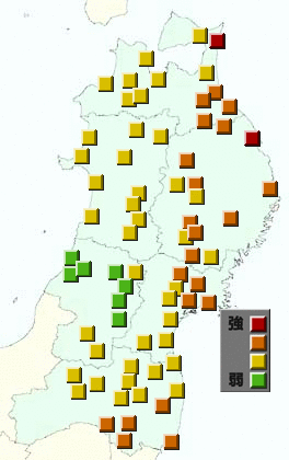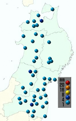 GotoHome Return Prev Next むつ 平均: -3.0℃ 最高: -0.7℃ 最低: -5.3℃ 小田野沢 平均: -3.6℃ 最高: -0.8℃ 最低: -6.6℃ 蟹田 平均: -4.2℃ 最高: -1.9℃ 最低: -6.2℃ 五所川原 平均: -3.3℃ 最高: -0.5℃ 最低: -6.7℃ 青森 平均: -3.0℃ 最高: -0.2℃ 最低: -5.3℃ 六ケ所 平均: -4.3℃ 最高: -1.7℃ 最低: -8.1℃ 鯵ケ沢 平均: -3.0℃ 最高: -1.3℃ 最低: -4.8℃ 弘前 平均: -3.7℃ 最高: -0.4℃ 最低: -6.8℃ 黒石 平均: -4.0℃ 最高: -1.8℃ 最低: -7.2℃ 三沢 平均: -3.0℃ 最高: 0.4℃ 最低: -5.7℃ 十和田 平均: -4.4℃ 最高: -0.8℃ 最低: -9.6℃ 八戸 平均: -2.4℃ 最高: 0.1℃ 最低: -5.5℃ 三戸 平均: -2.1℃ 最高: 2.2℃ 最低: -6.3℃ 能代 平均: -1.9℃ 最高: -0.5℃ 最低: -4.0℃ 大館 平均: -3.2℃ 最高: -0.5℃ 最低: -6.5℃ 鹿角 平均: -3.9℃ 最高: -2.2℃ 最低: -6.8℃ 大潟 平均: -2.2℃ 最高: -0.4℃ 最低: -4.1℃ 阿仁合 平均: -3.9℃ 最高: -1.6℃ 最低: -7.0℃ 秋田 平均: -1.6℃ 最高: 0.0℃ 最低: -3.3℃ 角館 平均: -2.3℃ 最高: -0.5℃ 最低: -4.2℃ 大曲 平均: -1.9℃ 最高: -0.6℃ 最低: -4.1℃ 本荘 平均: -0.4℃ 最高: 0.9℃ 最低: -3.0℃ 横手 平均: -1.5℃ 最高: 0.7℃ 最低: -3.6℃ 湯沢 平均: -2.1℃ 最高: -0.2℃ 最低: -5.2℃ 軽米 平均: -3.3℃ 最高: -0.9℃ 最低: -5.9℃ 久慈 平均: -0.7℃ 最高: 2.3℃ 最低: -3.5℃ 岩手松尾 平均: -4.2℃ 最高: -0.6℃ 最低: -8.8℃ 雫石 平均: -4.0℃ 最高: -1.3℃ 最低: -9.2℃ 盛岡 平均: -2.6℃ 最高: 0.0℃ 最低: -5.0℃ 宮古 平均: 0.2℃ 最高: 3.1℃ 最低: -2.3℃ 紫波 平均: -2.6℃ 最高: 0.6℃ 最低: -5.4℃ 遠野 平均: -3.1℃ 最高: -0.5℃ 最低: -6.0℃ 北上 平均: -1.4℃ 最高: 1.2℃ 最低: -3.6℃ 若柳 平均: -1.5℃ 最高: 1.0℃ 最低: -3.4℃ 江刺 平均: -1.6℃ 最高: 1.3℃ 最低: -5.3℃ 一関 平均: -0.2℃ 最高: 2.7℃ 最低: -3.2℃ 千厩 平均: -0.8℃ 最高: 1.7℃ 最低: -2.9℃ 築舘 平均: -0.3℃ 最高: 2.8℃ 最低: -4.2℃ 米山 平均: 0.2℃ 最高: 3.1℃ 最低: -3.1℃ 古川 平均: -0.2℃ 最高: 1.8℃ 最低: -1.9℃ 大衡 平均: -0.4℃ 最高: 1.4℃ 最低: -1.9℃ 鹿島台 平均: 0.2℃ 最高: 2.1℃ 最低: -1.8℃ 石巻 平均: 0.4℃ 最高: 2.6℃ 最低: -1.4℃ 仙台 平均: 0.8℃ 最高: 3.9℃ 最低: -1.4℃ 白石 平均: 0.7℃ 最高: 4.1℃ 最低: -2.0℃ 亘理 平均: 1.7℃ 最高: 5.2℃ 最低: -1.1℃ 酒田 平均: 0.2℃ 最高: 1.6℃ 最低: -1.1℃ 鶴岡 平均: -0.3℃ 最高: 1.0℃ 最低: -1.4℃ 狩川 平均: -0.9℃ 最高: 0.2℃ 最低: -1.9℃ 新庄 平均: -1.7℃ 最高: 0.0℃ 最低: -3.0℃ 向町 平均: -2.5℃ 最高: -0.8℃ 最低: -3.7℃ 尾花沢 平均: -1.9℃ 最高: -0.6℃ 最低: -3.0℃ 村山 平均: -1.5℃ 最高: -0.1℃ 最低: -2.8℃ 山形 平均: -1.3℃ 最高: 0.0℃ 最低: -2.7℃ 長井 平均: -1.1℃ 最高: 0.8℃ 最低: -2.7℃ 米沢 平均: -0.8℃ 最高: 0.5℃ 最低: -2.3℃ 福島 平均: 1.9℃ 最高: 4.5℃ 最低: -0.6℃ 相馬 平均: 2.2℃ 最高: 6.0℃ 最低: -0.6℃ 喜多方 平均: -0.4℃ 最高: 1.3℃ 最低: -3.9℃ 飯舘 平均: -0.6℃ 最高: 2.8℃ 最低: -2.4℃ 猪苗代 平均: -2.4℃ 最高: -1.2℃ 最低: -3.9℃ 二本松 平均: 0.6℃ 最高: 3.1℃ 最低: -1.0℃ 若松 平均: -0.2℃ 最高: 1.2℃ 最低: -1.9℃ 船引 平均: -0.4℃ 最高: 2.1℃ 最低: -2.6℃ 浪江 平均: 2.3℃ 最高: 7.5℃ 最低: -1.3℃ 郡山 平均: 1.0℃ 最高: 3.3℃ 最低: -0.9℃ 川内 平均: 0.3℃ 最高: 4.4℃ 最低: -2.1℃ 白河 平均: 1.9℃ 最高: 4.8℃ 最低: -1.2℃ 石川 平均: 1.7℃ 最高: 5.3℃ 最低: -1.0℃ 東白川 平均: 1.4℃ 最高: 6.1℃ 最低: -2.4℃ 小名浜 平均: 3.7℃ 最高: 7.1℃ 最低: 0.6℃ むつ : 2.1時間 小田野沢 : 8.2時間 蟹田 : 1.2時間 五所川原 : 1.4時間 青森 : 3.4時間 六ケ所 : 3.2時間 鯵ケ沢 : 1.4時間 弘前 : 4.6時間 黒石 : 4.6時間 三沢 : 6.7時間 十和田 : 7.4時間 八戸 : 7.2時間 三戸 : 6.2時間 能代 : 1.8時間 大館 : 4.6時間 鹿角 : 2.7時間 大潟 : 1.9時間 阿仁合 : 1.3時間 秋田 : 1.0時間 角館 : 2.9時間 大曲 : 2.5時間 本荘 : 2.2時間 横手 : 2.4時間 湯沢 : 2.0時間 軽米 : 6.6時間 久慈 : 8.4時間 岩手松尾 : 7.1時間 雫石 : 4.4時間 盛岡 : 6.4時間 宮古 : 6.0時間 紫波 : 2.7時間 遠野 : 5.1時間 北上 : 5.9時間 若柳 : 4.9時間 江刺 : 5.5時間 一関 : 5.6時間 千厩 : 4.0時間 築舘 : 5.7時間 米山 : 6.1時間 古川 : 4.7時間 大衡 : 2.1時間 鹿島台 : 5.1時間 石巻 : 5.3時間 仙台 : 4.9時間 白石 : 4.4時間 亘理 : 3.7時間 酒田 : 0.2時間 鶴岡 : 0.1時間 狩川 : 0.0時間 新庄 : 0.2時間 向町 : 2.6時間 尾花沢 : 0.6時間 村山 : 0.3時間 山形 : 0.4時間 長井 : 1.1時間 米沢 : 1.2時間 福島 : 3.4時間 相馬 : 4.4時間 喜多方 : 2.4時間 飯舘 : 4.6時間 猪苗代 : 2.9時間 二本松 : 2.1時間 若松 : 2.2時間 船引 : 4.4時間 浪江 : 4.5時間 郡山 : 4.4時間 川内 : 5.8時間 白河 : 5.6時間 石川 : 5.6時間 東白川 : 5.3時間 小名浜 : 6.2時間 むつ : 1.0mm 小田野沢 : 0.0mm 蟹田 : 1.5mm 五所川原 : 1.5mm 青森 : 4.0mm 六ケ所 : 0.0mm 鯵ケ沢 : 1.0mm 弘前 : 1.5mm 黒石 : 0.5mm 三沢 : 0.0mm 十和田 : 0.0mm 八戸 : 0.0mm 三戸 : 0.0mm 能代 : 1.0mm 大館 : 1.5mm 鹿角 : 1.5mm 大潟 : 0.0mm 阿仁合 : 2.0mm 秋田 : 1.5mm 角館 : 1.5mm 大曲 : 0.0mm 本荘 : 0.0mm 横手 : 1.5mm 湯沢 : 1.0mm 軽米 : 0.0mm 久慈 : 0.0mm 岩手松尾 : 0.5mm 雫石 : 0.0mm 盛岡 : 0.0mm 宮古 : 0.0mm 紫波 : 0.0mm 遠野 : 0.0mm 北上 : 1.5mm 若柳 : 1.0mm 江刺 : 0.5mm 一関 : 0.0mm 千厩 : 0.0mm 築舘 : 0.0mm 米山 : 0.0mm 古川 : 0.0mm 大衡 : 0.5mm 鹿島台 : 0.5mm 石巻 : 0.5mm 仙