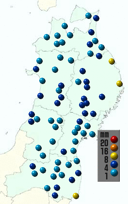 GotoHome Return Prev Next むつ 平均: -3.0℃ 最高: -0.9℃ 最低: -5.8℃ 小田野沢 平均: -2.7℃ 最高: -0.9℃ 最低: -5.3℃ 蟹田 平均: -2.1℃ 最高: -0.4℃ 最低: -5.4℃ 五所川原 平均: -3.3℃ 最高: 0.6℃ 最低: -9.1℃ 青森 平均: -2.3℃ 最高: 0.5℃ 最低: -6.8℃ 六ケ所 平均: -3.2℃ 最高: -1.5℃ 最低: -7.8℃ 鯵ケ沢 平均: -2.9℃ 最高: -0.2℃ 最低: -8.3℃ 弘前 平均: -3.0℃ 最高: 0.4℃ 最低: -7.1℃ 黒石 平均: -3.3℃ 最高: -0.3℃ 最低: -8.0℃ 三沢 平均: -2.2℃ 最高: 0.3℃ 最低: -5.2℃ 十和田 平均: -2.9℃ 最高: 0.0℃ 最低: -7.5℃ 八戸 平均: -1.6℃ 最高: 0.7℃ 最低: -4.6℃ 三戸 平均: -1.8℃ 最高: 2.6℃ 最低: -5.3℃ 能代 平均: -1.6℃ 最高: 1.9℃ 最低: -5.5℃ 大館 平均: -2.5℃ 最高: 1.7℃ 最低: -6.5℃ 鹿角 平均: -3.6℃ 最高: 0.9℃ 最低: -9.8℃ 大潟 平均: -2.0℃ 最高: 欠測 最低: 欠測 阿仁合 平均: -3.4℃ 最高: 0.2℃ 最低: -7.4℃ 秋田 平均: -1.5℃ 最高: 1.7℃ 最低: -4.0℃ 角館 平均: -1.9℃ 最高: 2.6℃ 最低: -6.7℃ 大曲 平均: -2.1℃ 最高: 1.7℃ 最低: -6.8℃ 本荘 平均: -1.0℃ 最高: 3.2℃ 最低: -3.6℃ 横手 平均: -1.7℃ 最高: 2.0℃ 最低: -4.9℃ 湯沢 平均: -2.3℃ 最高: 0.4℃ 最低: -5.5℃ 軽米 平均: -2.7℃ 最高: 0.4℃ 最低: -5.6℃ 久慈 平均: -0.8℃ 最高: 1.7℃ 最低: -2.8℃ 岩手松尾 平均: -4.1℃ 最高: 0.8℃ 最低: -9.8℃ 雫石 平均: -3.6℃ 最高: 1.2℃ 最低: -10.3℃ 盛岡 平均: -2.1℃ 最高: 2.0℃ 最低: -5.3℃ 宮古 平均: -0.7℃ 最高: 0.8℃ 最低: -2.4℃ 紫波 平均: -2.5℃ 最高: 1.7℃ 最低: -6.1℃ 遠野 平均: -2.2℃ 最高: 1.6℃ 最低: -6.0℃ 北上 平均: -1.2℃ 最高: 2.9℃ 最低: -4.2℃ 若柳 平均: -1.8℃ 最高: 2.6℃ 最低: -5.0℃ 江刺 平均: -1.3℃ 最高: 3.1℃ 最低: -4.6℃ 一関 平均: -0.2℃ 最高: 3.6℃ 最低: -3.5℃ 千厩 平均: -0.3℃ 最高: 3.0℃ 最低: -3.0℃ 築舘 平均: -0.5℃ 最高: 2.9℃ 最低: -2.9℃ 米山 平均: 0.1℃ 最高: 4.1℃ 最低: -2.9℃ 古川 平均: -0.3℃ 最高: 3.4℃ 最低: -2.7℃ 大衡 平均: -0.6℃ 最高: 3.2℃ 最低: -2.6℃ 鹿島台 平均: 0.2℃ 最高: 3.3℃ 最低: -2.5℃ 石巻 平均: 0.2℃ 最高: 3.0℃ 最低: -2.8℃ 仙台 平均: 0.5℃ 最高: 3.7℃ 最低: -2.2℃ 白石 平均: 0.2℃ 最高: 2.6℃ 最低: -1.5℃ 亘理 平均: 0.9℃ 最高: 3.5℃ 最低: -1.4℃ 酒田 平均: 0.5℃ 最高: 4.1℃ 最低: -2.0℃ 鶴岡 平均: 0.0℃ 最高: 2.9℃ 最低: -2.3℃ 狩川 平均: -0.5℃ 最高: 2.3℃ 最低: -1.9℃ 新庄 平均: -1.5℃ 最高: 1.2℃ 最低: -5.6℃ 向町 平均: -1.7℃ 最高: 0.9℃ 最低: -4.8℃ 尾花沢 平均: -1.0℃ 最高: 2.2℃ 最低: -5.3℃ 村山 平均: -0.8℃ 最高: 2.0℃ 最低: -4.1℃ 山形 平均: -0.6℃ 最高: 2.5℃ 最低: -3.0℃ 長井 平均: -0.6℃ 最高: 3.4℃ 最低: -3.1℃ 米沢 平均: -0.1℃ 最高: 2.2℃ 最低: -2.6℃ 福島 平均: 1.9℃ 最高: 5.3℃ 最低: -0.7℃ 相馬 平均: 1.1℃ 最高: 4.6℃ 最低: -0.9℃ 喜多方 平均: 0.5℃ 最高: 3.7℃ 最低: -1.4℃ 飯舘 平均: -0.5℃ 最高: 2.0℃ 最低: -3.1℃ 猪苗代 平均: -0.8℃ 最高: 1.9℃ 最低: -2.5℃ 二本松 平均: 0.9℃ 最高: 4.8℃ 最低: -2.0℃ 若松 平均: 0.8℃ 最高: 3.6℃ 最低: -1.3℃ 船引 平均: -0.7℃ 最高: 2.6℃ 最低: -3.2℃ 浪江 平均: 1.7℃ 最高: 4.3℃ 最低: -0.8℃ 郡山 平均: 0.9℃ 最高: 4.4℃ 最低: -1.7℃ 川内 平均: -0.6℃ 最高: 1.1℃ 最低: -2.2℃ 白河 平均: 0.0℃ 最高: 2.5℃ 最低: -2.0℃ 石川 平均: 0.1℃ 最高: 2.6℃ 最低: -1.7℃ 東白川 平均: 0.3℃ 最高: 2.6℃ 最低: -1.3℃ 小名浜 平均: 2.3℃ 最高: 4.5℃ 最低: 0.5℃ むつ : 0.6時間 小田野沢 : 0.0時間 蟹田 : 0.0時間 五所川原 : 2.6時間 青森 : 3.8時間 六ケ所 : 0.0時間 鯵ケ沢 : 2.6時間 弘前 : 2.3時間 黒石 : 3.1時間 三沢 : 0.0時間 十和田 : 1.2時間 八戸 : 1.0時間 三戸 : 1.1時間 能代 : 3.2時間 大館 : 2.9時間 鹿角 : 3.9時間 大潟 : 2.8時間 阿仁合 : 3.0時間 秋田 : 2.3時間 角館 : 2.7時間 大曲 : 3.4時間 本荘 : 2.6時間 横手 : 4.7時間 湯沢 : 4.9時間 軽米 : 1.4時間 久慈 : 0.4時間 岩手松尾 : 2.8時間 雫石 : 3.6時間 盛岡 : 4.4時間 宮古 : 0.0時間 紫波 : 5.0時間 遠野 : 2.4時間 北上 : 5.4時間 若柳 : 4.8時間 江刺 : 5.5時間 一関 : 4.6時間 千厩 : 3.2時間 築舘 : 3.9時間 米山 : 5.6時間 古川 : 4.0時間 大衡 : 2.2時間 鹿島台 : 5.0時間 石巻 : 3.9時間 仙台 : 1.3時間 白石 : 2.1時間 亘理 : 1.3時間 酒田 : 4.3時間 鶴岡 : 4.7時間 狩川 : 4.6時間 新庄 : 4.4時間 向町 : 0.8時間 尾花沢 : 3.8時間 村山 : 4.5時間 山形 : 4.3時間 長井 : 3.4時間 米沢 : 4.6時間 福島 : 2.6時間 相馬 : 1.9時間 喜多方 : 4.5時間 飯舘 : 1.4時間 猪苗代 : 1.5時間 二本松 : 4.0時間 若松 : 4.1時間 船引 : 4.0時間 浪江 : 1.7時間 郡山 : 4.1時間 川内 : 0.2時間 白河 : 2.8時間 石川 : 0.7時間 東白川 : 0.1時間 小名浜 : 0.1時間 むつ : 1.5mm 小田野沢 : 5.5mm 蟹田 : 2.0mm 五所川原 : 0.5mm 青森 : 2.5mm 六ケ所 : 5.0mm 鯵ケ沢 : 1.5mm 弘前 : 2.5mm 黒石 : 1.0mm 三沢 : 2.0mm 十和田 : 5.0mm 八戸 : 2.5mm 三戸 : 3.5mm 能代 : 1.5mm 大館 : 1.0mm 鹿角 : 1.5mm 大潟 : 4.0mm 阿仁合 : 2.0mm 秋田 : 3.5mm 角館 : 5.5mm 大曲 : 3.5mm 本荘 : 6.5mm 横手 : 4.0mm 湯沢 : 4.0mm 軽米 : 4.0mm 久慈 : 11.5mm 岩手松尾 : 4.0mm 雫石 : 3.5mm 盛岡 : 5.5mm 宮古 : 11.0mm 紫波 : 6.5mm 遠野 : 5.5mm 北上 : 5.5mm 若柳 : 5.5mm 江刺 : 5.0mm 一関 : 6.0mm 千厩 : 4.5mm 築舘 : 4.0mm 米山 : 3.0mm 古川 : 1.5mm 大衡 : 2.5mm 鹿島台 : 1.5mm 石巻 : 2.5mm 仙台 : 2.0mm 白石 :