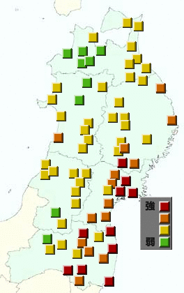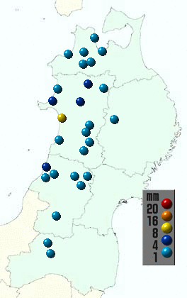 GotoHome Return Prev Next むつ 平均: 4.4℃ 最高: 6.4℃ 最低: 2.1℃ 小田野沢 平均: 5.0℃ 最高: 7.9℃ 最低: 1.2℃ 蟹田 平均: 2.5℃ 最高: 7.5℃ 最低: -0.7℃ 五所川原 平均: 3.3℃ 最高: 5.8℃ 最低: 0.5℃ 青森 平均: 4.2℃ 最高: 7.3℃ 最低: 1.2℃ 六ケ所 平均: 3.2℃ 最高: 8.0℃ 最低: -1.3℃ 鯵ケ沢 平均: 4.5℃ 最高: 6.8℃ 最低: 1.2℃ 弘前 平均: 4.0℃ 最高: 8.3℃ 最低: 0.2℃ 黒石 平均: 4.2℃ 最高: 6.4℃ 最低: 1.8℃ 三沢 平均: 5.2℃ 最高: 9.8℃ 最低: 0.4℃ 十和田 平均: 4.5℃ 最高: 8.5℃ 最低: -0.9℃ 八戸 平均: 5.6℃ 最高: 11.2℃ 最低: 0.5℃ 三戸 平均: 3.7℃ 最高: 9.8℃ 最低: -0.8℃ 能代 平均: 3.9℃ 最高: 7.9℃ 最低: 0.3℃ 大館 平均: 1.8℃ 最高: 5.7℃ 最低: -0.9℃ 鹿角 平均: 1.5℃ 最高: 4.9℃ 最低: -1.4℃ 大潟 平均: 3.6℃ 最高: 7.7℃ 最低: 0.0℃ 阿仁合 平均: 1.8℃ 最高: 6.3℃ 最低: -0.5℃ 秋田 平均: 4.5℃ 最高: 9.3℃ 最低: 1.5℃ 角館 平均: 2.3℃ 最高: 7.7℃ 最低: -1.3℃ 大曲 平均: 2.3℃ 最高: 7.0℃ 最低: -0.8℃ 本荘 平均: 4.5℃ 最高: 10.2℃ 最低: 0.4℃ 横手 平均: 3.1℃ 最高: 7.9℃ 最低: 0.0℃ 湯沢 平均: 2.5℃ 最高: 8.0℃ 最低: -0.9℃ 軽米 平均: 3.5℃ 最高: 8.6℃ 最低: -1.8℃ 久慈 平均: 5.1℃ 最高: 11.5℃ 最低: -0.9℃ 岩手松尾 平均: 2.6℃ 最高: 7.7℃ 最低: -3.2℃ 雫石 平均: 2.0℃ 最高: 6.7℃ 最低: -2.4℃ 盛岡 平均: 3.3℃ 最高: 8.0℃ 最低: -0.5℃ 宮古 平均: 5.7℃ 最高: 12.7℃ 最低: 1.2℃ 紫波 平均: 3.2℃ 最高: 7.6℃ 最低: -0.3℃ 遠野 平均: 1.7℃ 最高: 8.5℃ 最低: -4.0℃ 北上 平均: 4.0℃ 最高: 9.5℃ 最低: -0.6℃ 若柳 平均: 3.4℃ 最高: 9.6℃ 最低: -1.3℃ 江刺 平均: 3.8℃ 最高: 9.5℃ 最低: -1.6℃ 一関 平均: 5.4℃ 最高: 12.1℃ 最低: -0.5℃ 千厩 平均: 4.2℃ 最高: 10.5℃ 最低: -1.8℃ 築舘 平均: 4.0℃ 最高: 11.1℃ 最低: -2.9℃ 米山 平均: 5.3℃ 最高: 13.7℃ 最低: -1.5℃ 古川 平均: 4.4℃ 最高: 11.5℃ 最低: -1.2℃ 大衡 平均: 4.8℃ 最高: 11.3℃ 最低: -1.6℃ 鹿島台 平均: 4.8℃ 最高: 12.8℃ 最低: -3.2℃ 石巻 平均: 6.7℃ 最高: 12.6℃ 最低: 0.7℃ 仙台 平均: 7.3℃ 最高: 12.0℃ 最低: 1.6℃ 白石 平均: 6.1℃ 最高: 11.7℃ 最低: -0.8℃ 亘理 平均: 7.4℃ 最高: 13.6℃ 最低: 0.9℃ 酒田 平均: 6.2℃ 最高: 10.8℃ 最低: 2.6℃ 鶴岡 平均: 6.2℃ 最高: 10.4℃ 最低: 1.4℃ 狩川 平均: 3.3℃ 最高: 7.2℃ 最低: 1.1℃ 新庄 平均: 2.8℃ 最高: 8.9℃ 最低: -1.0℃ 向町 平均: 2.6℃ 最高: 7.8℃ 最低: -1.7℃ 尾花沢 平均: 3.1℃ 最高: 7.7℃ 最低: -0.5℃ 村山 平均: 3.3℃ 最高: 8.7℃ 最低: -1.4℃ 山形 平均: 5.6℃ 最高: 10.1℃ 最低: 1.0℃ 長井 平均: 2.9℃ 最高: 8.4℃ 最低: -1.2℃ 米沢 平均: 3.7℃ 最高: 9.1℃ 最低: -0.8℃ 福島 平均: 6.5℃ 最高: 13.2℃ 最低: 0.0℃ 相馬 平均: 6.9℃ 最高: 14.0℃ 最低: -0.9℃ 喜多方 平均: 1.0℃ 最高: 6.2℃ 最低: -3.2℃ 飯舘 平均: 2.4℃ 最高: 10.6℃ 最低: -4.8℃ 猪苗代 平均: 1.0℃ 最高: 6.1℃ 最低: -5.3℃ 二本松 平均: 5.3℃ 最高: 11.5℃ 最低: -1.3℃ 若松 平均: 1.8℃ 最高: 7.1℃ 最低: -2.8℃ 船引 平均: 2.9℃ 最高: 7.8℃ 最低: -3.2℃ 浪江 平均: 7.4℃ 最高: 14.5℃ 最低: -0.4℃ 郡山 平均: 4.6℃ 最高: 9.1℃ 最低: -1.5℃ 川内 平均: 2.8℃ 最高: 9.7℃ 最低: -4.6℃ 白河 平均: 4.6℃ 最高: 11.9℃ 最低: -2.8℃ 石川 平均: 4.6℃ 最高: 12.7℃ 最低: -2.9℃ 東白川 平均: 4.7℃ 最高: 13.4℃ 最低: -3.3℃ 小名浜 平均: 6.6℃ 最高: 15.3℃ 最低: 0.1℃ むつ : 2.1時間 小田野沢 : 3.0時間 蟹田 : 1.2時間 五所川原 : 0.2時間 青森 : 0.2時間 六ケ所 : 3.5時間 鯵ケ沢 : 0.3時間 弘前 : 0.6時間 黒石 : 0.3時間 三沢 : 2.1時間 十和田 : 4.4時間 八戸 : 4.9時間 三戸 : 4.1時間 能代 : 1.5時間 大館 : 0.0時間 鹿角 : 1.2時間 大潟 : 2.7時間 阿仁合 : 0.9時間 秋田 : 3.4時間 角館 : 1.8時間 大曲 : 3.2時間 本荘 : 5.5時間 横手 : 3.8時間 湯沢 : 4.5時間 軽米 : 4.0時間 久慈 : 7.1時間 岩手松尾 : 4.7時間 雫石 : 1.7時間 盛岡 : 3.4時間 宮古 : 7.3時間 紫波 : 4.0時間 遠野 : 3.5時間 北上 : 4.0時間 若柳 : 4.5時間 江刺 : 6.3時間 一関 : 8.2時間 千厩 : 7.8時間 築舘 : 6.6時間 米山 : 8.1時間 古川 : 6.4時間 大衡 : 4.9時間 鹿島台 : 9.0時間 石巻 : 9.0時間 仙台 : 5.5時間 白石 : 7.7時間 亘理 : 7.9時間 酒田 : 4.3時間 鶴岡 : 3.7時間 狩川 : 2.5時間 新庄 : 3.9時間 向町 : 3.5時間 尾花沢 : 3.0時間 村山 : 3.3時間 山形 : 3.7時間 長井 : 0.6時間 米沢 : 2.2時間 福島 : 9.4時間 相馬 : 9.2時間 喜多方 : 0.1時間 飯舘 : 4.5時間 猪苗代 : 3.0時間 二本松 : 5.6時間 若松 : 2.1時間 船引 : 5.4時間 浪江 : 9.4時間 郡山 : 4.9時間 川内 : 7.8時間 白河 : 10.7時間 石川 : 10.1時間 東白川 : 7.1時間 小名浜 : 9.9時間 むつ : 0.0mm 小田野沢 : 0.0mm 蟹田 : 0.5mm 五所川原 : 1.5mm 青森 : 0.5mm 六ケ所 : 0.0mm 鯵ケ沢 : 2.0mm 弘前 : 0.5mm 黒石 : 1.5mm 三沢 : 0.0mm 十和田 : 0.0mm 八戸 : 0.0mm 三戸 : 0.0mm 能代 : 3.0mm 大館 : 5.0mm 鹿角 : 2.5mm 大潟 : 4.0mm 阿仁合 : 5.0mm 秋田 : 9.0mm 角館 : 3.0mm 大曲 : 1.0mm 本荘 : 2.0mm 横手 : 2.0mm 湯沢 : 1.0mm 軽米 : 0.0mm 久慈 : 0.0mm 岩手松尾 : 0.0mm 雫石 : 0.5mm 盛岡 : 0.0mm 宮古 : 0.0mm 紫波 : 0.0mm 遠野 : 0.0mm 北上 : 0.0mm 若柳 : 0.0mm 江刺 : 0.0mm 一関 : 0.0mm 千厩 : 0.0mm 築舘 : 0.0mm 米山 : 0.0mm 古川 : 0.0mm 大衡 : 0.0mm 鹿島台 : 0.0mm 石巻 : 0.0mm 仙台 : 0.0mm 白石 : 0.0mm 亘理 : 0.0mm 酒田 : 4.5mm 鶴岡 : 2.5mm 