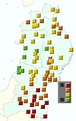 東北地方アメダス分布図(日別)