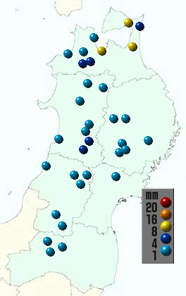 GotoHome Return Prev Next むつ 平均: 1.5℃ 最高: 3.2℃ 最低: 0.5℃ 小田野沢 平均: 1.0℃ 最高: 2.8℃ 最低: 0.4℃ 蟹田 平均: 1.8℃ 最高: 2.9℃ 最低: 0.4℃ 五所川原 平均: 1.5℃ 最高: 3.3℃ 最低: 0.6℃ 青森 平均: 0.9℃ 最高: 2.9℃ 最低: 0.0℃ 六ケ所 平均: 0.2℃ 最高: 1.2℃ 最低: -0.3℃ 鯵ケ沢 平均: 2.2℃ 最高: 3.3℃ 最低: 0.8℃ 弘前 平均: 1.2℃ 最高: 3.7℃ 最低: -0.1℃ 黒石 平均: 0.9℃ 最高: 3.1℃ 最低: -0.2℃ 三沢 平均: 2.6℃ 最高: 5.1℃ 最低: 0.5℃ 十和田 平均: 2.5℃ 最高: 4.7℃ 最低: 0.2℃ 八戸 平均: 3.2℃ 最高: 6.0℃ 最低: 1.5℃ 三戸 平均: 3.0℃ 最高: 5.4℃ 最低: 1.0℃ 能代 平均: 3.6℃ 最高: 6.0℃ 最低: 1.7℃ 大館 平均: 2.5℃ 最高: 4.9℃ 最低: 0.5℃ 鹿角 平均: 1.1℃ 最高: 3.1℃ 最低: -0.2℃ 大潟 平均: 3.4℃ 最高: 4.8℃ 最低: 2.2℃ 阿仁合 平均: 1.5℃ 最高: 3.0℃ 最低: 0.2℃ 秋田 平均: 4.0℃ 最高: 5.3℃ 最低: 2.9℃ 角館 平均: 2.3℃ 最高: 4.8℃ 最低: 0.6℃ 大曲 平均: 2.4℃ 最高: 3.4℃ 最低: 0.8℃ 本荘 平均: 4.2℃ 最高: 5.5℃ 最低: 2.9℃ 横手 平均: 2.0℃ 最高: 3.5℃ 最低: 0.2℃ 湯沢 平均: 2.1℃ 最高: 3.7℃ 最低: 0.1℃ 軽米 平均: 1.7℃ 最高: 3.8℃ 最低: 0.5℃ 久慈 平均: 4.0℃ 最高: 6.2℃ 最低: 2.0℃ 岩手松尾 平均: 1.3℃ 最高: 3.3℃ 最低: 0.1℃ 雫石 平均: 0.7℃ 最高: 1.8℃ 最低: -0.2℃ 盛岡 平均: 1.1℃ 最高: 3.1℃ 最低: 0.3℃ 宮古 平均: 4.7℃ 最高: 7.1℃ 最低: 2.4℃ 紫波 平均: 1.8℃ 最高: 4.6℃ 最低: 0.5℃ 遠野 平均: 1.2℃ 最高: 3.2℃ 最低: -0.1℃ 北上 平均: 2.0℃ 最高: 3.3℃ 最低: 0.5℃ 若柳 平均: 2.8℃ 最高: 5.4℃ 最低: 0.2℃ 江刺 平均: 3.0℃ 最高: 5.4℃ 最低: 0.7℃ 一関 平均: 4.6℃ 最高: 7.3℃ 最低: 2.7℃ 千厩 平均: 3.1℃ 最高: 5.6℃ 最低: 0.9℃ 築舘 平均: 3.5℃ 最高: 6.3℃ 最低: 1.3℃ 米山 平均: 3.9℃ 最高: 7.6℃ 最低: 1.5℃ 古川 平均: 3.5℃ 最高: 6.3℃ 最低: 1.8℃ 大衡 平均: 4.2℃ 最高: 6.3℃ 最低: 1.9℃ 鹿島台 平均: 4.3℃ 最高: 7.2℃ 最低: 1.7℃ 石巻 平均: 4.3℃ 最高: 7.6℃ 最低: 2.2℃ 仙台 平均: 5.4℃ 最高: 7.3℃ 最低: 4.1℃ 白石 平均: 4.8℃ 最高: 6.9℃ 最低: 3.3℃ 亘理 平均: 6.1℃ 最高: 9.6℃ 最低: 3.9℃ 酒田 平均: 4.9℃ 最高: 6.8℃ 最低: 2.8℃ 鶴岡 平均: 4.8℃ 最高: 6.6℃ 最低: 3.6℃ 狩川 平均: 3.8℃ 最高: 6.6℃ 最低: 2.3℃ 新庄 平均: 2.9℃ 最高: 4.9℃ 最低: 1.3℃ 向町 平均: 1.4℃ 最高: 2.8℃ 最低: -0.3℃ 尾花沢 平均: 2.5℃ 最高: 3.8℃ 最低: 0.7℃ 村山 平均: 3.2℃ 最高: 5.4℃ 最低: 0.7℃ 山形 平均: 3.9℃ 最高: 6.1℃ 最低: 1.6℃ 長井 平均: 2.8℃ 最高: 4.3℃ 最低: 1.1℃ 米沢 平均: 2.3℃ 最高: 4.7℃ 最低: 0.6℃ 福島 平均: 5.0℃ 最高: 7.9℃ 最低: 3.4℃ 相馬 平均: 5.7℃ 最高: 9.1℃ 最低: 3.4℃ 喜多方 平均: 2.6℃ 最高: 6.3℃ 最低: 1.0℃ 飯舘 平均: 2.5℃ 最高: 6.5℃ 最低: -0.2℃ 猪苗代 平均: -0.3℃ 最高: 3.0℃ 最低: -1.8℃ 二本松 平均: 4.7℃ 最高: 8.3℃ 最低: 2.5℃ 若松 平均: 2.0℃ 最高: 4.6℃ 最低: 0.6℃ 船引 平均: 1.7℃ 最高: 5.1℃ 最低: 0.2℃ 浪江 平均: 5.8℃ 最高: 10.1℃ 最低: 1.0℃ 郡山 平均: 3.2℃ 最高: 5.2℃ 最低: 2.0℃ 川内 平均: 2.7℃ 最高: 6.2℃ 最低: 0.8℃ 白河 平均: 3.6℃ 最高: 5.4℃ 最低: 1.8℃ 石川 平均: 3.4℃ 最高: 6.2℃ 最低: 1.2℃ 東白川 平均: 3.0℃ 最高: 8.8℃ 最低: -2.5℃ 小名浜 平均: 7.4℃ 最高: 11.3℃ 最低: 3.7℃ むつ : 0.1時間 小田野沢 : 1.2時間 蟹田 : 2.8時間 五所川原 : 0.6時間 青森 : 0.7時間 六ケ所 : 1.2時間 鯵ケ沢 : 0.4時間 弘前 : 0.0時間 黒石 : 0.0時間 三沢 : 1.7時間 十和田 : 3.2時間 八戸 : 3.7時間 三戸 : 2.6時間 能代 : 3.4時間 大館 : 2.4時間 鹿角 : 3.2時間 大潟 : 1.0時間 阿仁合 : 0.4時間 秋田 : 0.5時間 角館 : 1.0時間 大曲 : 0.3時間 本荘 : 1.0時間 横手 : 0.4時間 湯沢 : 0.6時間 軽米 : 3.2時間 久慈 : 6.8時間 岩手松尾 : 1.3時間 雫石 : 1.4時間 盛岡 : 0.7時間 宮古 : 4.7時間 紫波 : 2.0時間 遠野 : 1.7時間 北上 : 1.1時間 若柳 : 3.1時間 江刺 : 2.5時間 一関 : 6.3時間 千厩 : 4.5時間 築舘 : 6.3時間 米山 : 7.8時間 古川 : 5.3時間 大衡 : 5.2時間 鹿島台 : 9.1時間 石巻 : 10.3時間 仙台 : 7.5時間 白石 : 4.2時間 亘理 : 6.9時間 酒田 : 0.9時間 鶴岡 : 1.9時間 狩川 : 0.9時間 新庄 : 2.1時間 向町 : 1.4時間 尾花沢 : 2.0時間 村山 : 3.4時間 山形 : 4.7時間 長井 : 1.9時間 米沢 : 2.0時間 福島 : 7.3時間 相馬 : 8.9時間 喜多方 : 3.2時間 飯舘 : 7.6時間 猪苗代 : 1.8時間 二本松 : 5.5時間 若松 : 0.9時間 船引 : 7.3時間 浪江 : 7.2時間 郡山 : 1.2時間 川内 : 7.3時間 白河 : 3.5時間 石川 : 5.3時間 東白川 : 6.7時間 小名浜 : 9.3時間 むつ : 8.5mm 小田野沢 : 5.0mm 蟹田 : 2.5mm 五所川原 : 2.5mm 青森 : 9.5mm 六ケ所 : 8.5mm 鯵ケ沢 : 1.0mm 弘前 : 6.5mm 黒石 : 4.0mm 三沢 : 0.0mm 十和田 : 0.0mm 八戸 : 0.0mm 三戸 : 0.0mm 能代 : 0.0mm 大館 : 1.5mm 鹿角 : 1.5mm 大潟 : 0.0mm 阿仁合 : 2.0mm 秋田 : 0.0mm 角館 : 2.5mm 大曲 : 0.5mm 本荘 : 0.5mm 横手 : 4.5mm 湯沢 : 5.0mm 軽米 : 0.0mm 久慈 : 0.0mm 岩手松尾 : 0.0mm 雫石 : 1.0mm 盛岡 : 1.0mm 宮古 : 0.0mm 紫波 : 0.0mm 遠野 : 0.5mm 北上 : 2.5mm 若柳 : 0.5mm 江刺 : 0.5mm 一関 : 0.0mm 千厩 : 0.0mm 築舘 : 0.5mm 米山 : 0.0mm 古川 : 0.0mm 大衡 : 0.0mm 鹿島台 : 0.0mm 石巻 : 0.0mm 仙台 : 0.0mm 白石 : 0.0mm 亘理 : 0.0mm 酒田 : 1.5mm 鶴岡 : 0.0mm 狩川 : 0.0mm 新庄 : 1.5mm 向町 : 1.5mm 尾花沢 : 1.0mm 