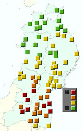 東北地方アメダス分布図(日別)