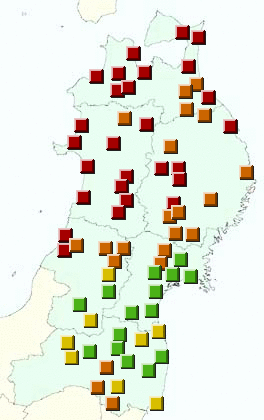 山形県 酒田,鶴岡,狩川,新庄,向町,尾花沢,村山,山形,長井,米沢