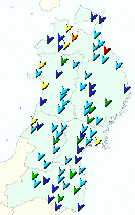 東北地方アメダス分布図(日別)
