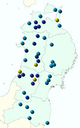 東北地方アメダス分布図(日別)