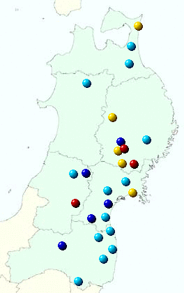 東北地方アメダス分布図(日別)