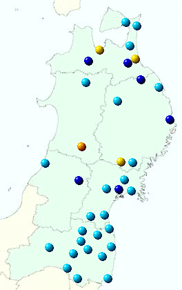 東北地方アメダス分布図(日別)