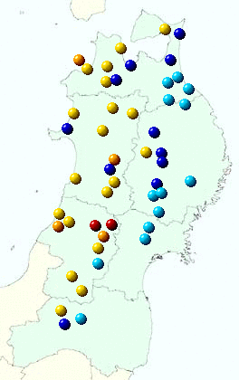 東北地方アメダス分布図(日別)