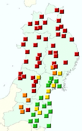 東北地方アメダス分布図(日別)