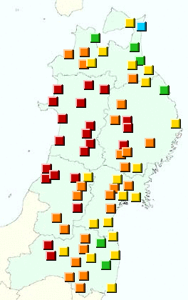 東北地方アメダス分布図(日別)